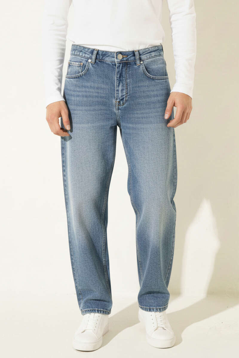 Normal Bel Bol Paça Erkek Kot Pantolon Orta Mavi