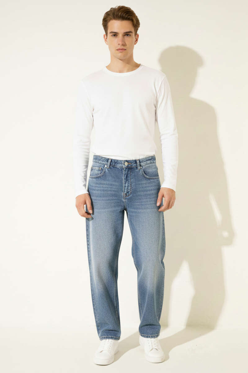 Regular Fit Bol Erkek Kot Pantolon Açık Mavi