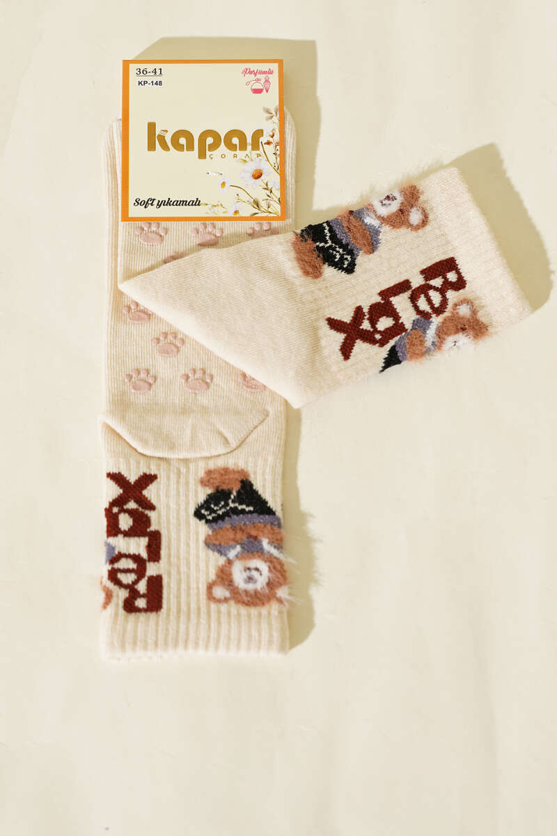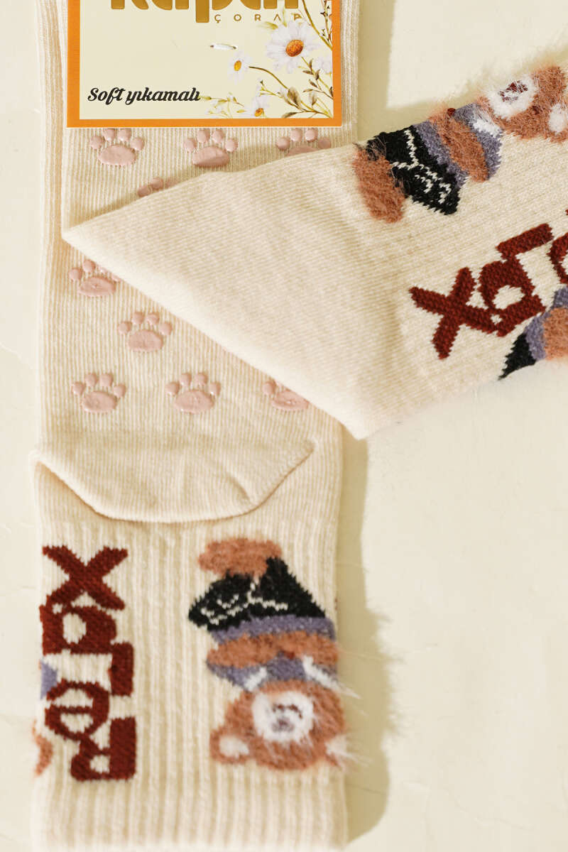 Relax Baskılı Sakallı Soket Çorap Bej