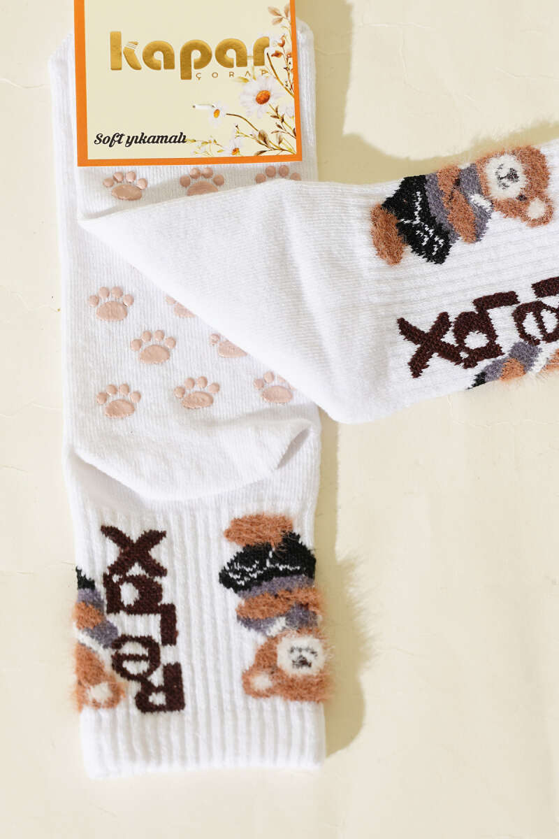Relax Baskılı Sakallı Soket Çorap Beyaz