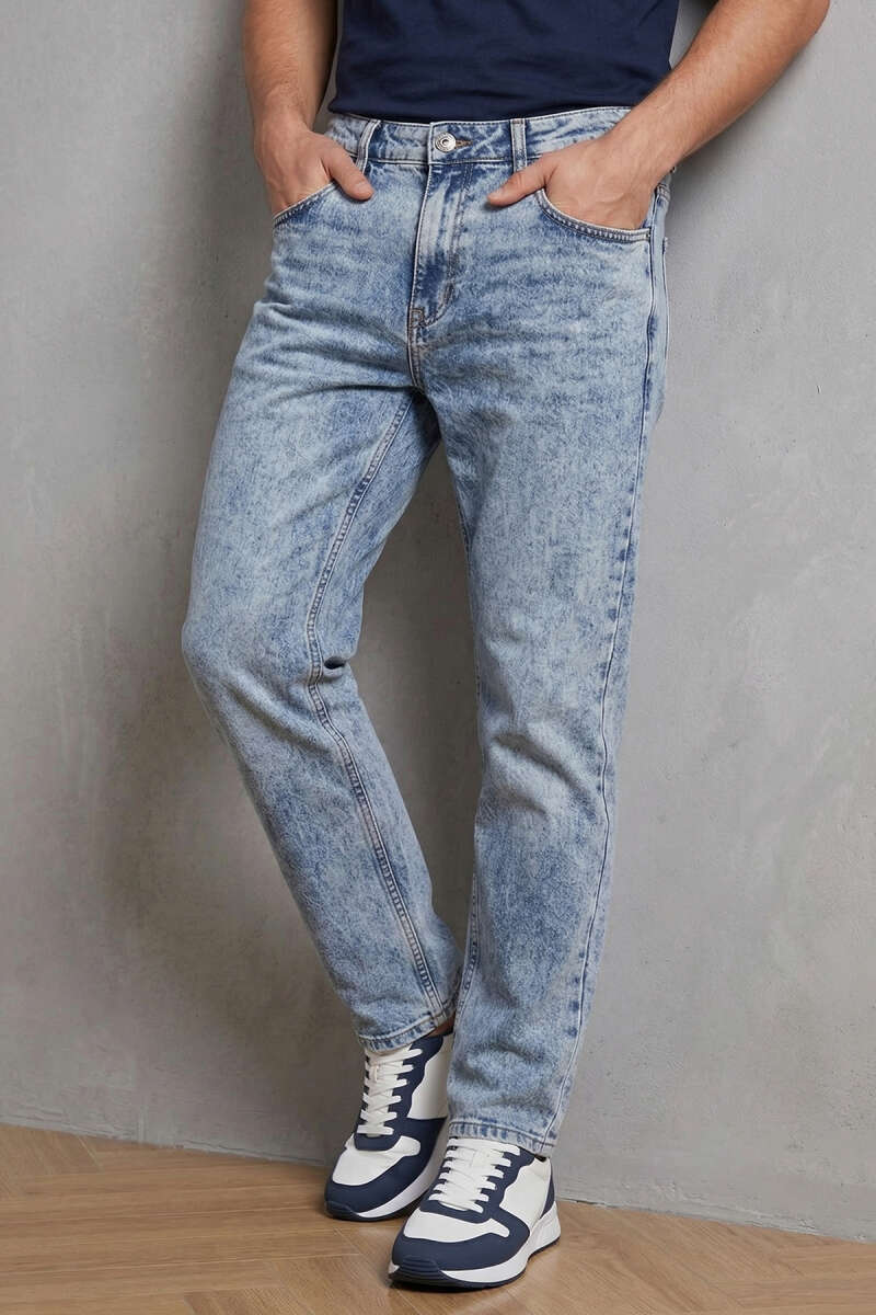 Relax Fit Kot Pantolon Mavi Kar