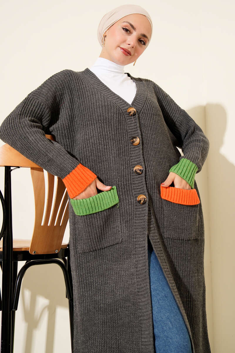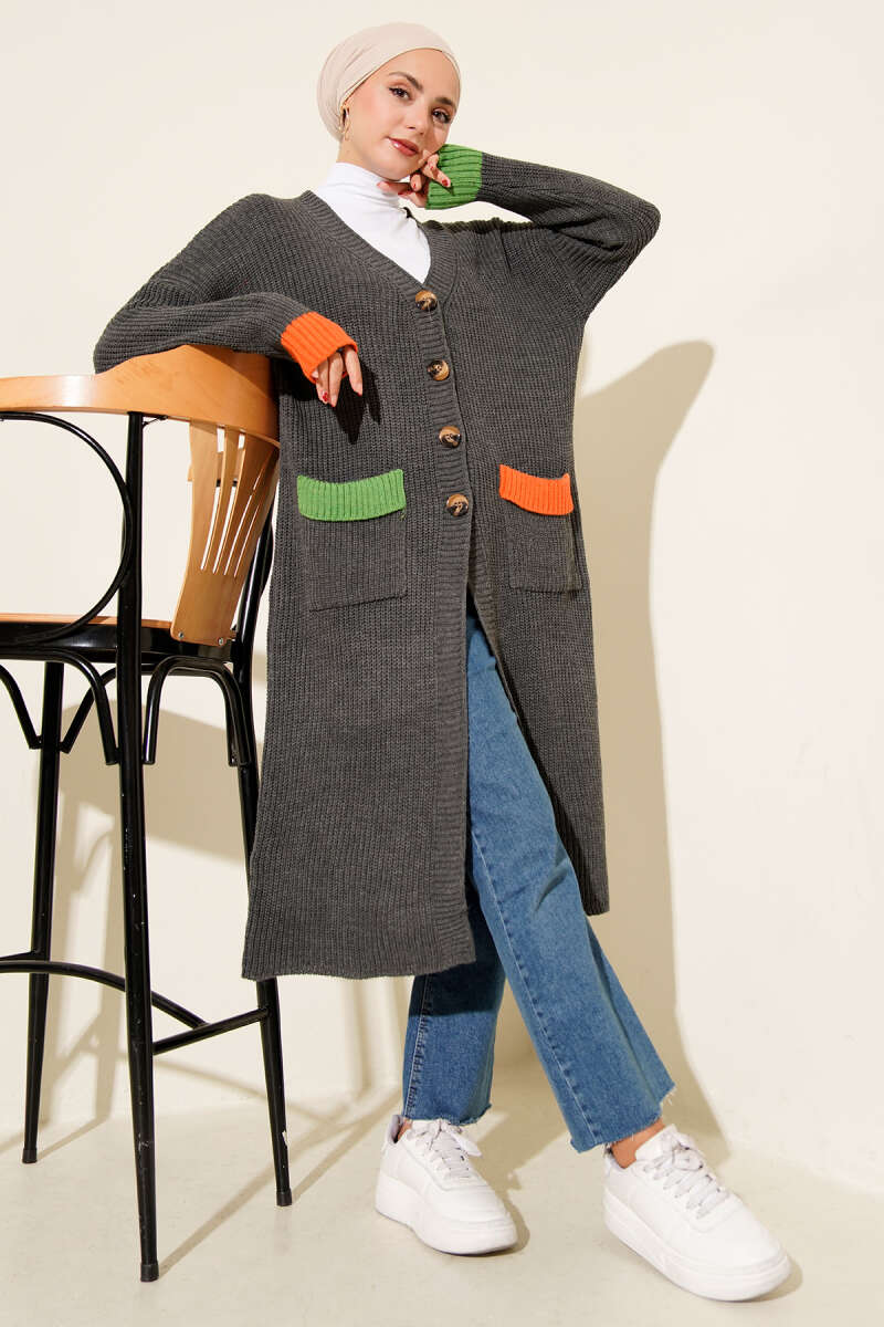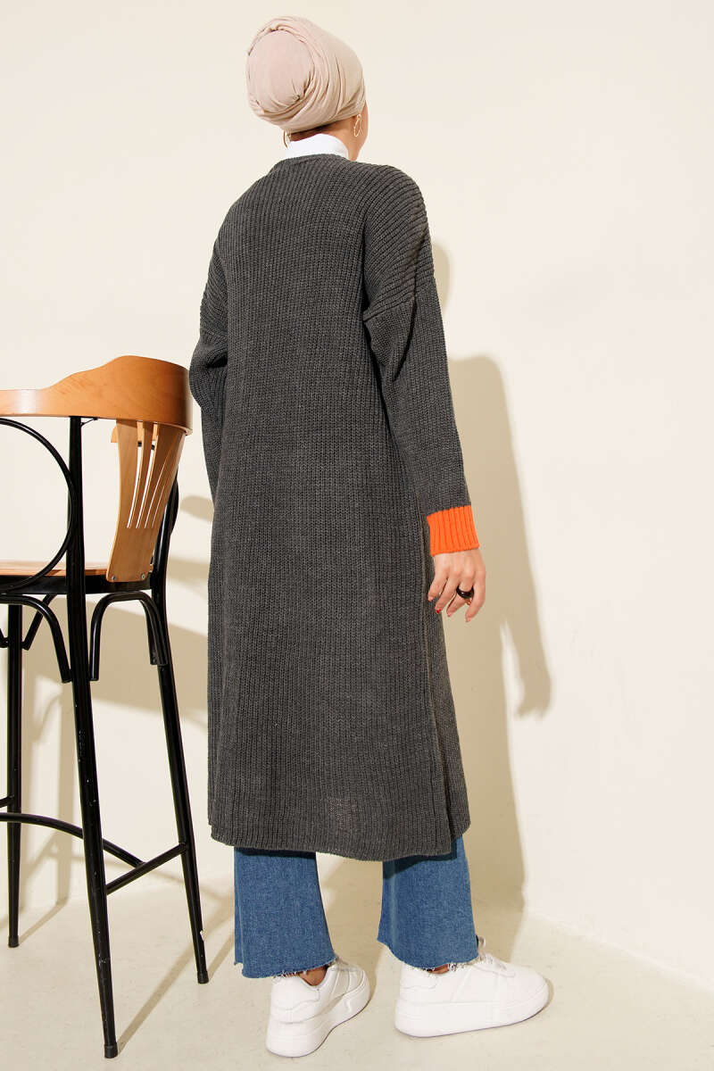 Zigzag Desenli Triko Uzun Hırka Siyah