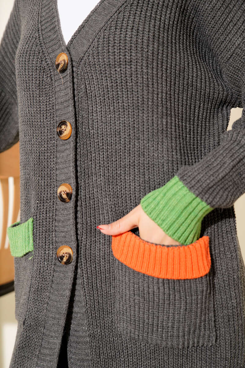 Şal Yaka Pirinç Örgü Triko Hırka Füme