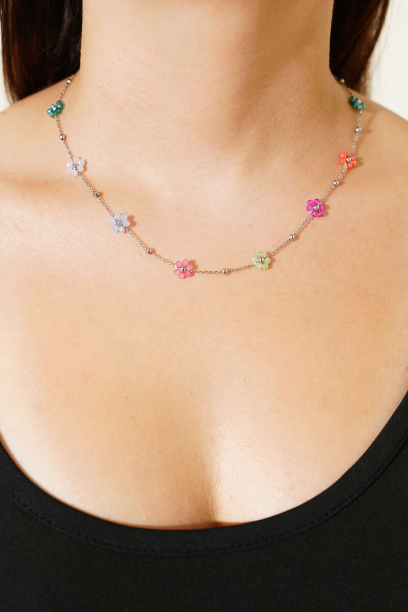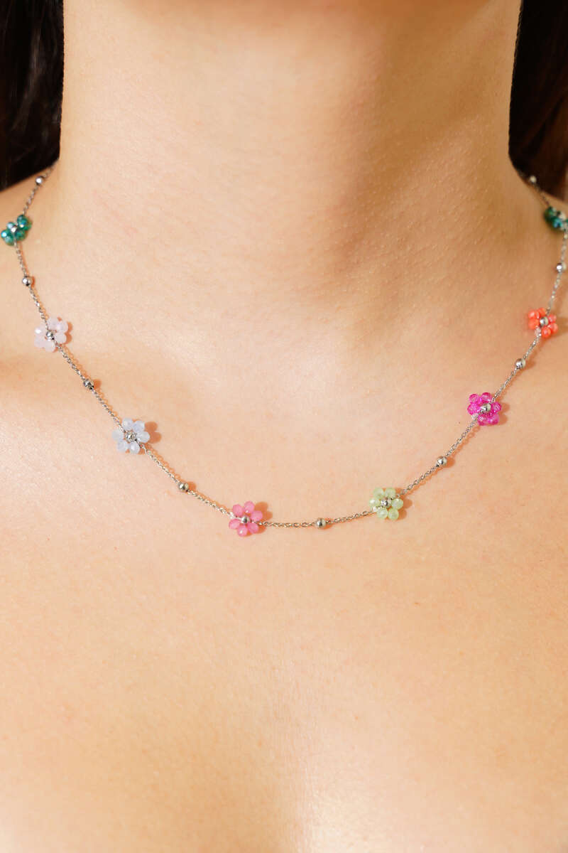 Renkli Çiçekli Kolye Gümüş