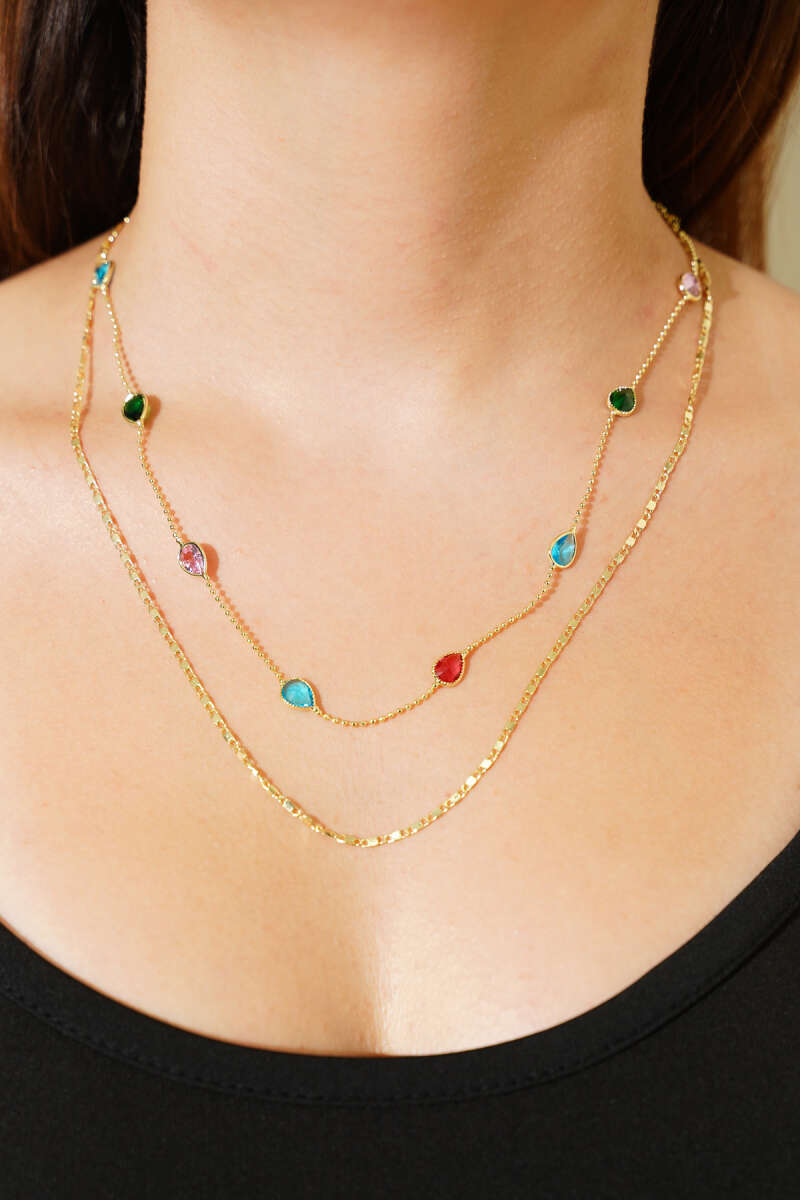 Gelince Haber VerPazarium kalite ve güvencesiyle beğenilerinize sunulan Renkli Damla Taşlı Kolye, oldukça uygun bir aksesuar. Farklı kombinler ile kolaylıkla uyum sağlayacak olan Renkli Damla Taşlı Kolye, kaliteli ve dayanıklı malzemesi ile uzun yıllar en şık kıyafetlerinizi mükemmel bir şekilde tamamlayacak!