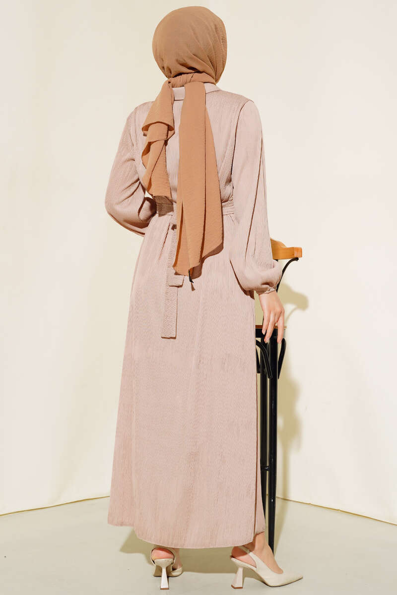 Taş Süslemeli Elbise Latte