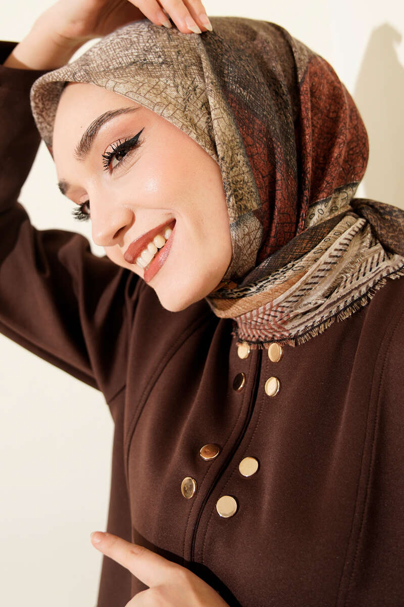 Bel Lastikli Düğme Detaylı İkili Takım Kahve