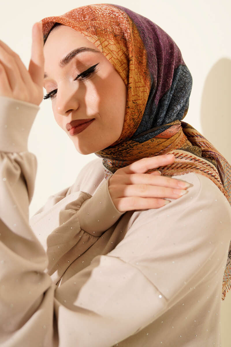 Menekşe Desen Modal Şal Kum Bej