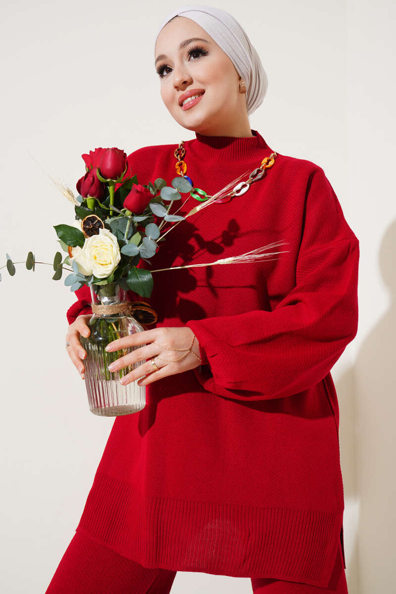 Balon Kol Balıkçı Yaka Triko İkili Takım Bordo