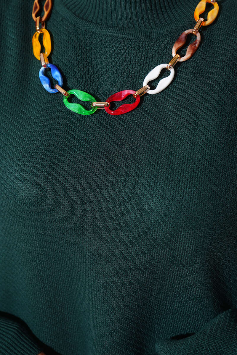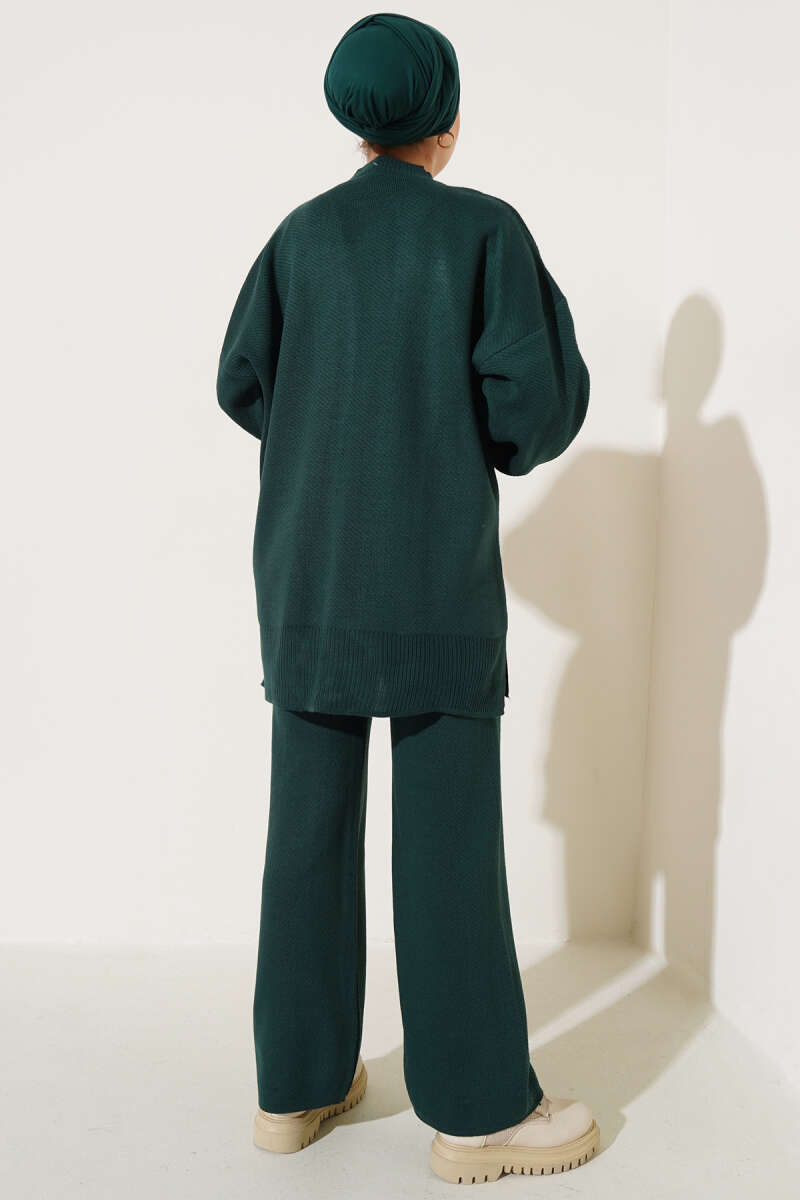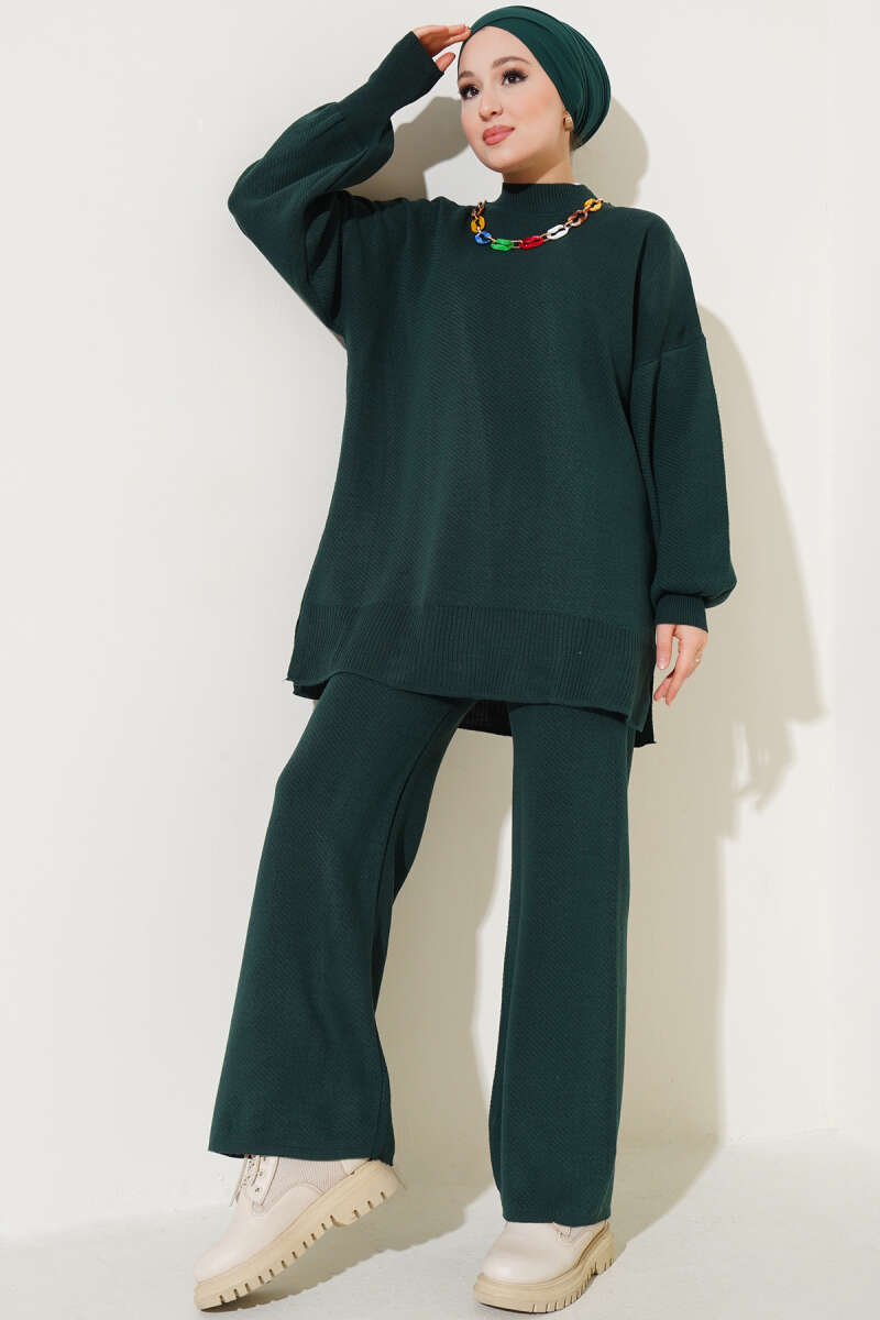 Renkli Kolyeli Basic Triko İkili Takım Zümrüt
