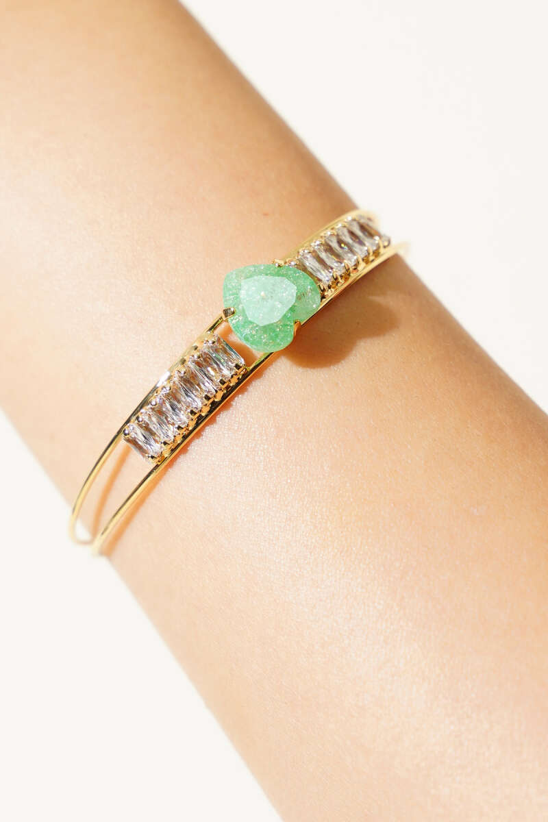 Ebruli Kabartmalı Kelepçe Bilezik Yeşil