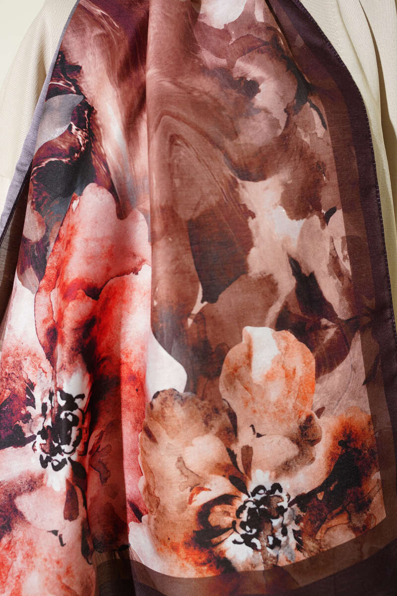 Çiçek Desenli Müslin Şal Kayrak Grisi
