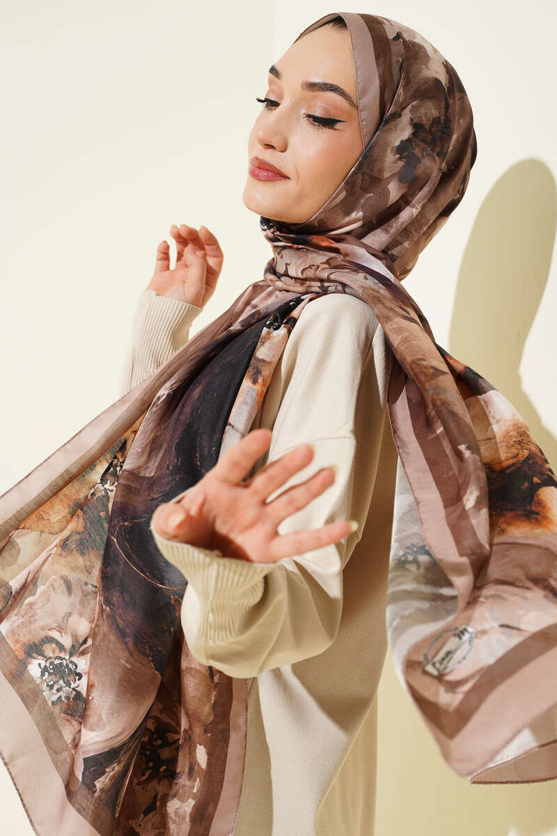 Çiçek Desenli Müslin Şal Kayrak Grisi