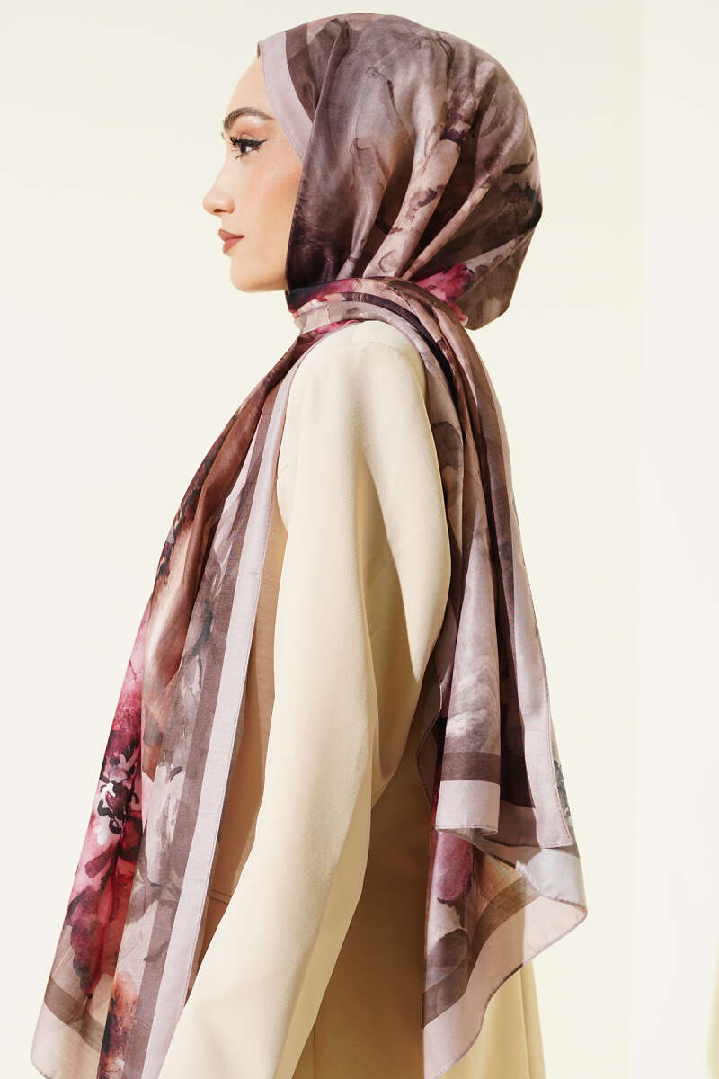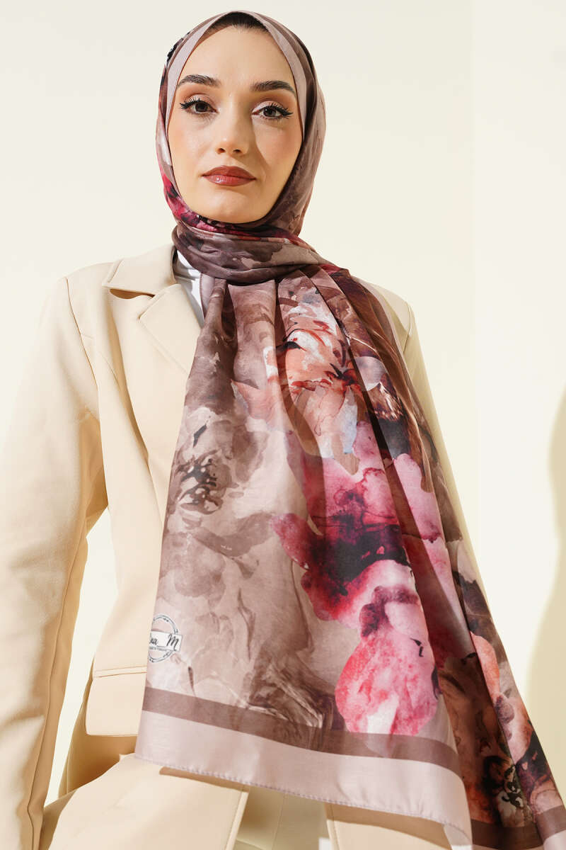 Flowers Desen Demore Eşarp Yağ Yeşili