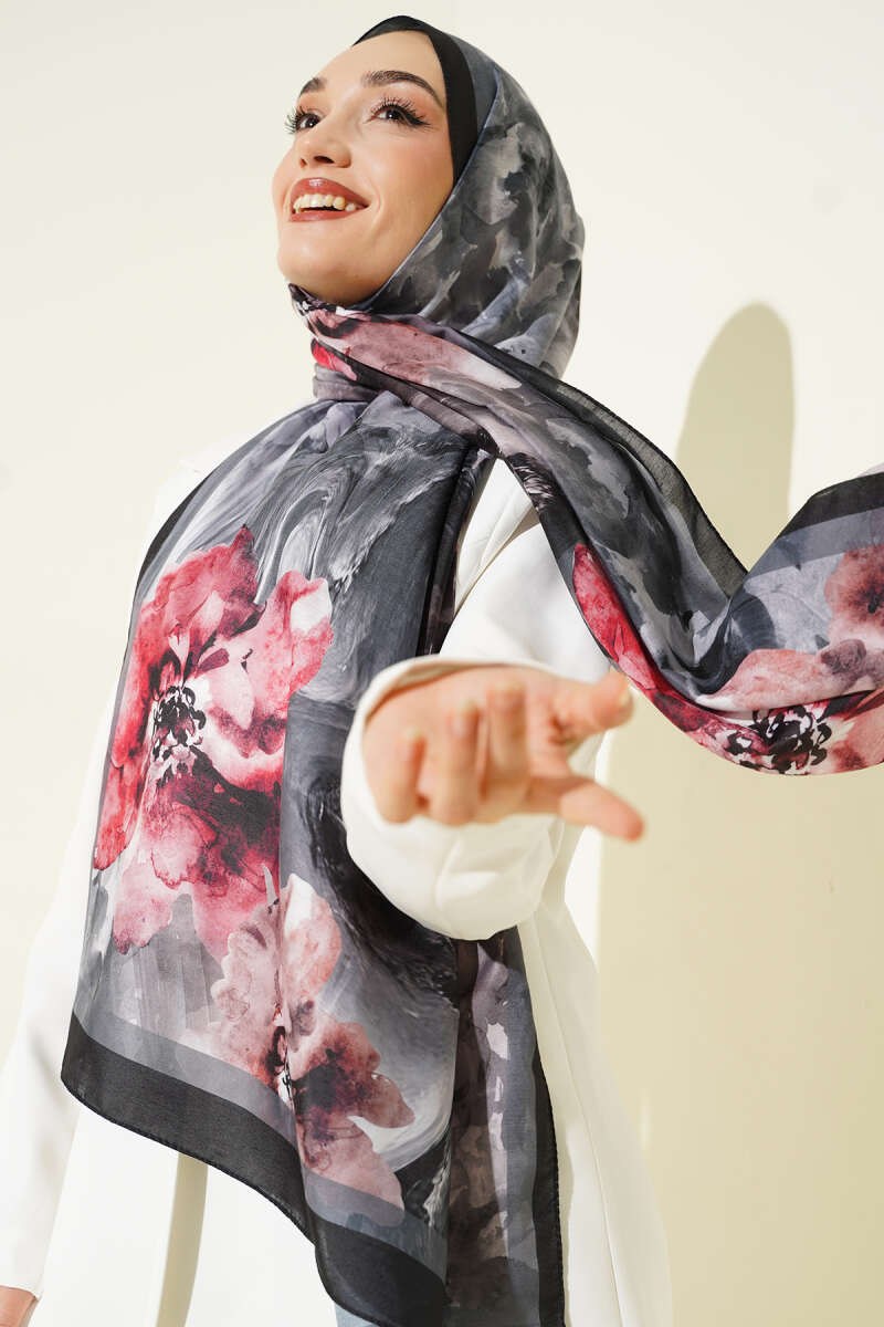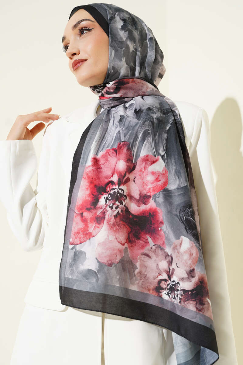 Flowers Desen Demore Eşarp Yağ Yeşili