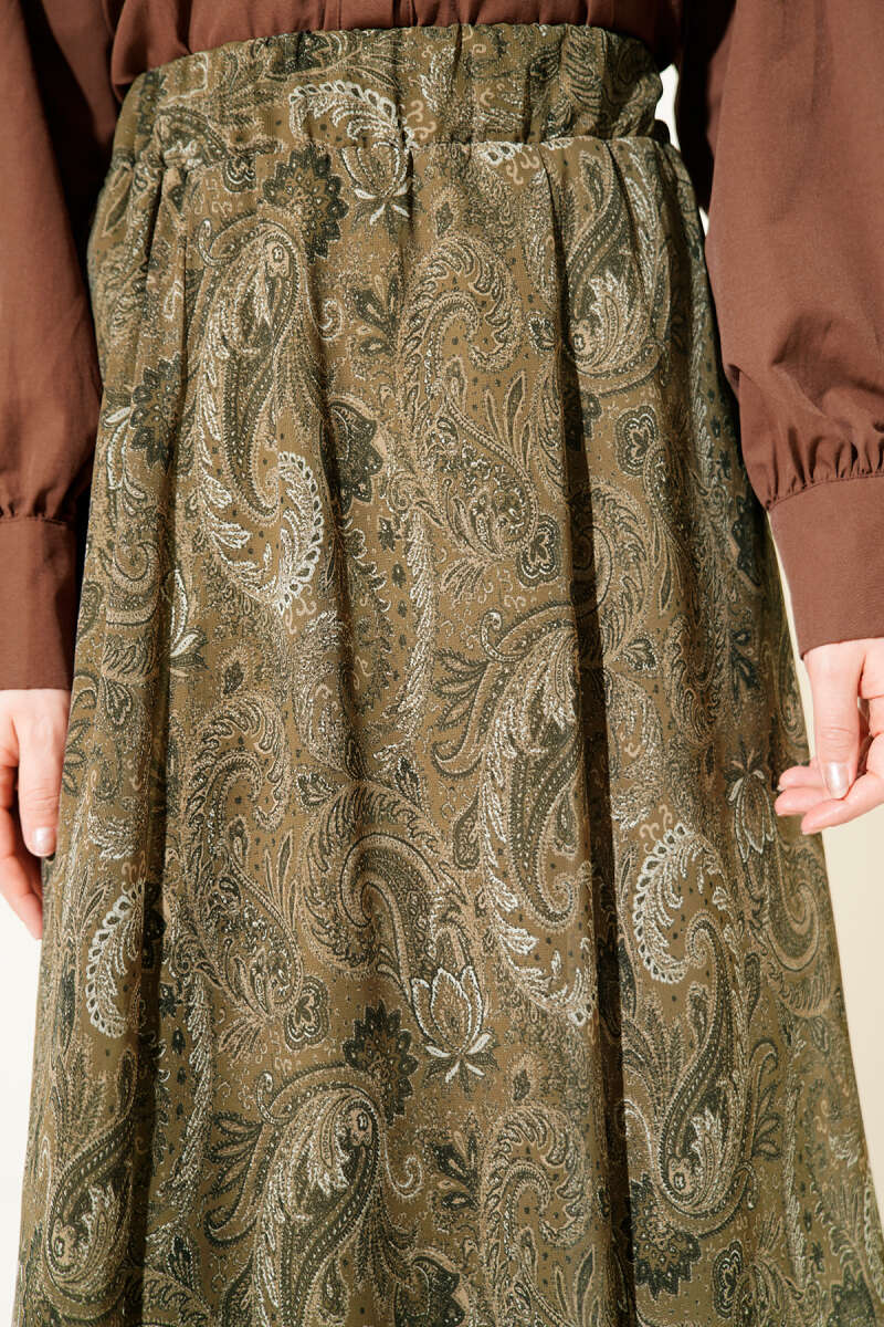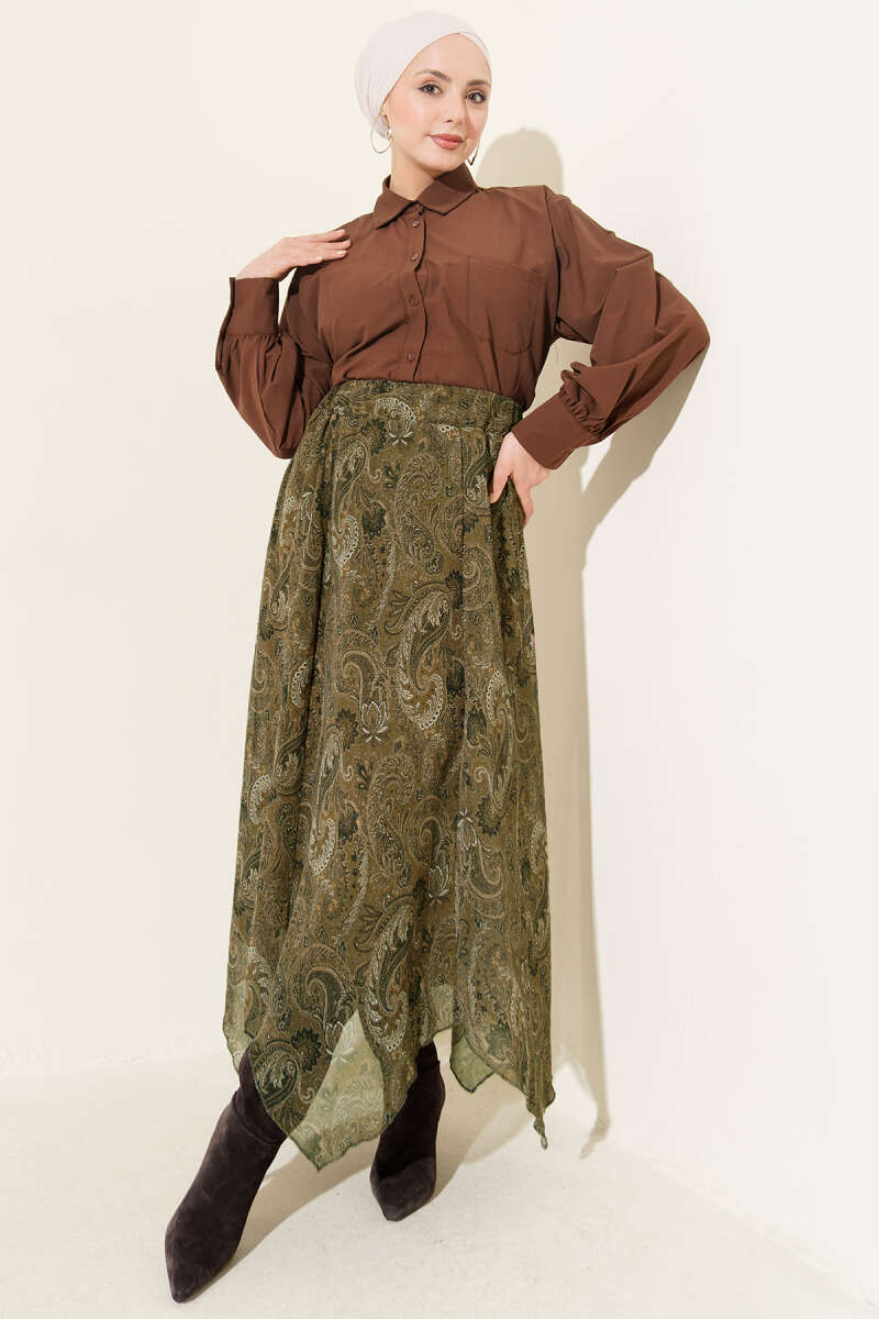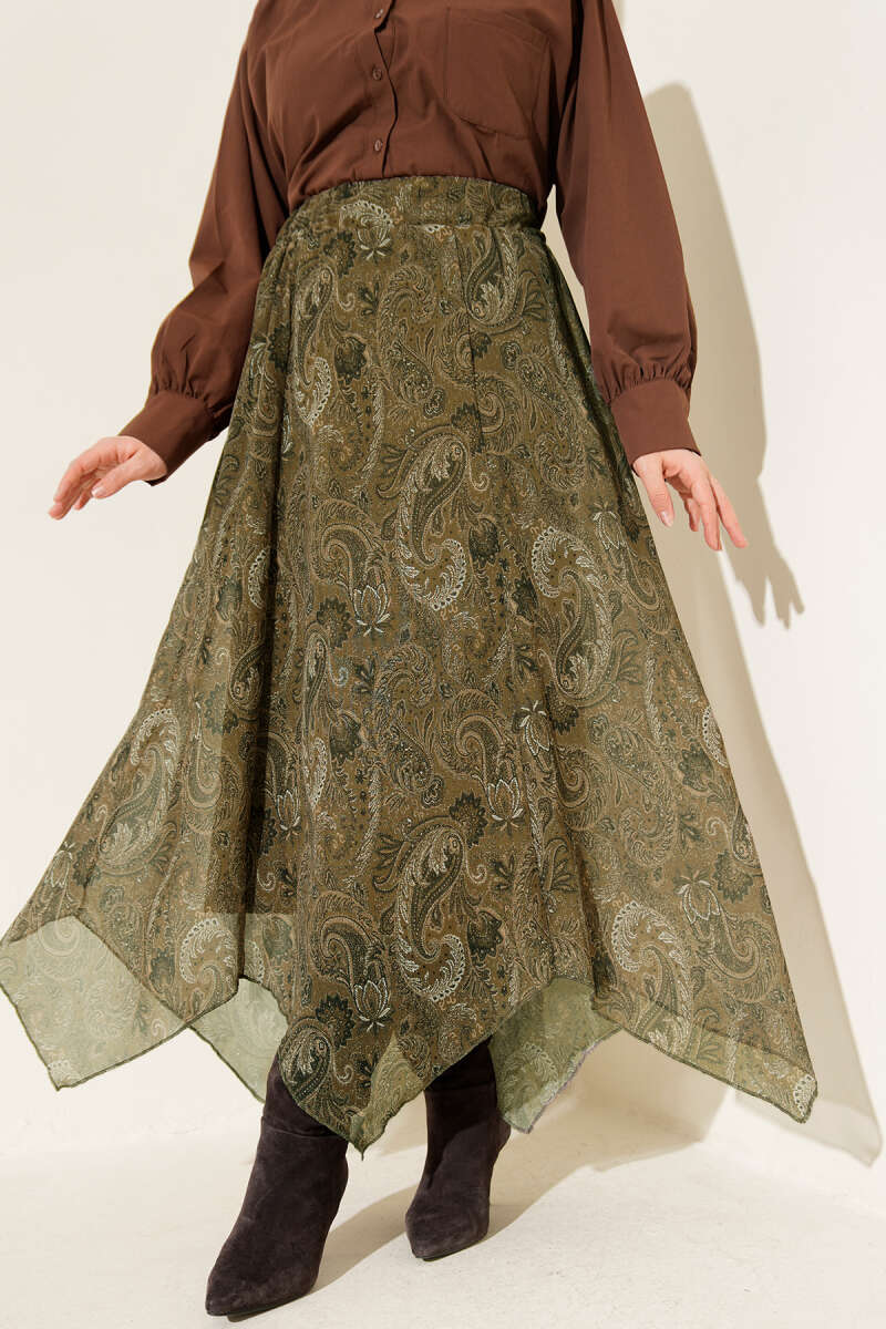 Retro Desen Asimetrik Şifon Etek Kahve