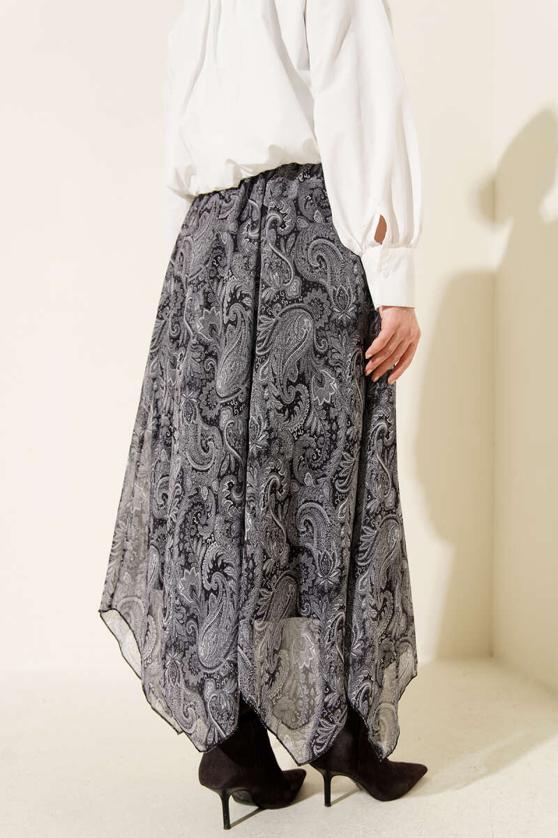 Retro Desen Asimetrik Şifon Etek Kahve