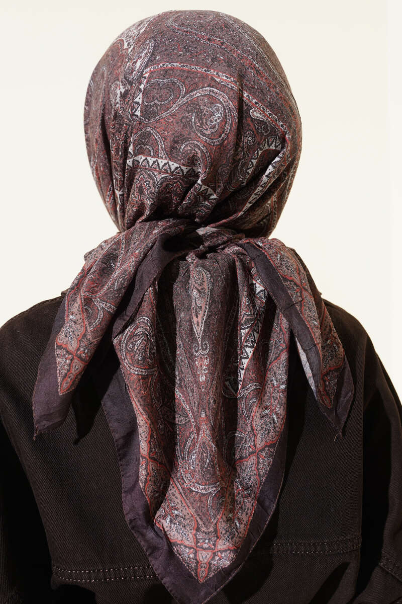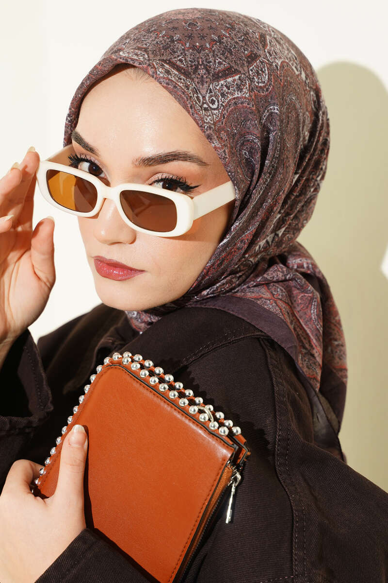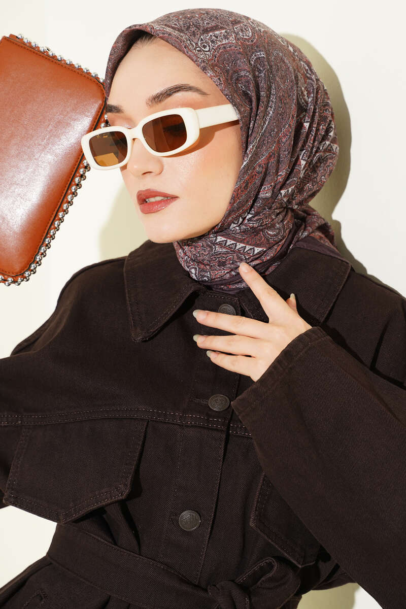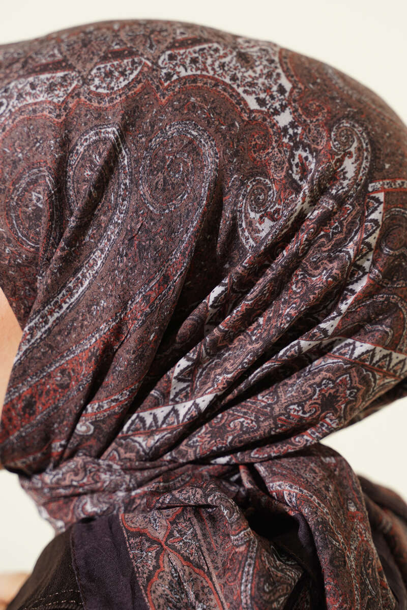 Çiçek Desenli Bambu Şal Acı Kahve