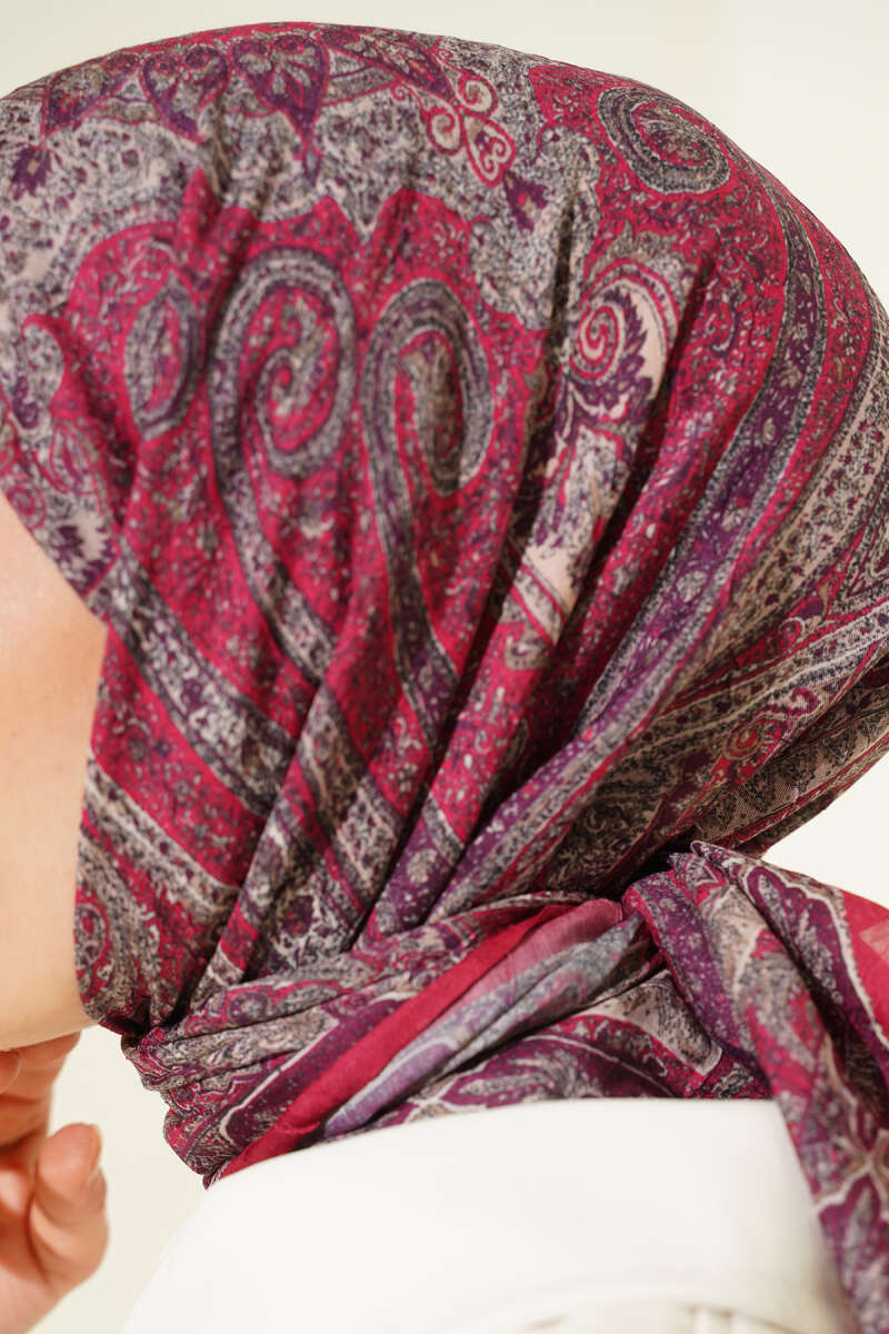 Retro Desen Bambu Kraş Eşarp Acı Kahve