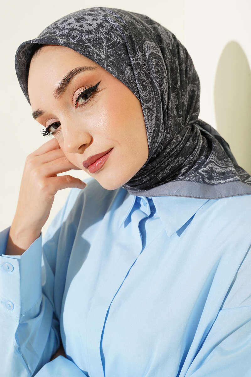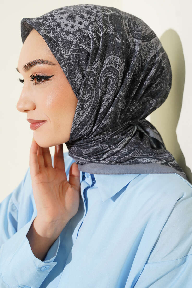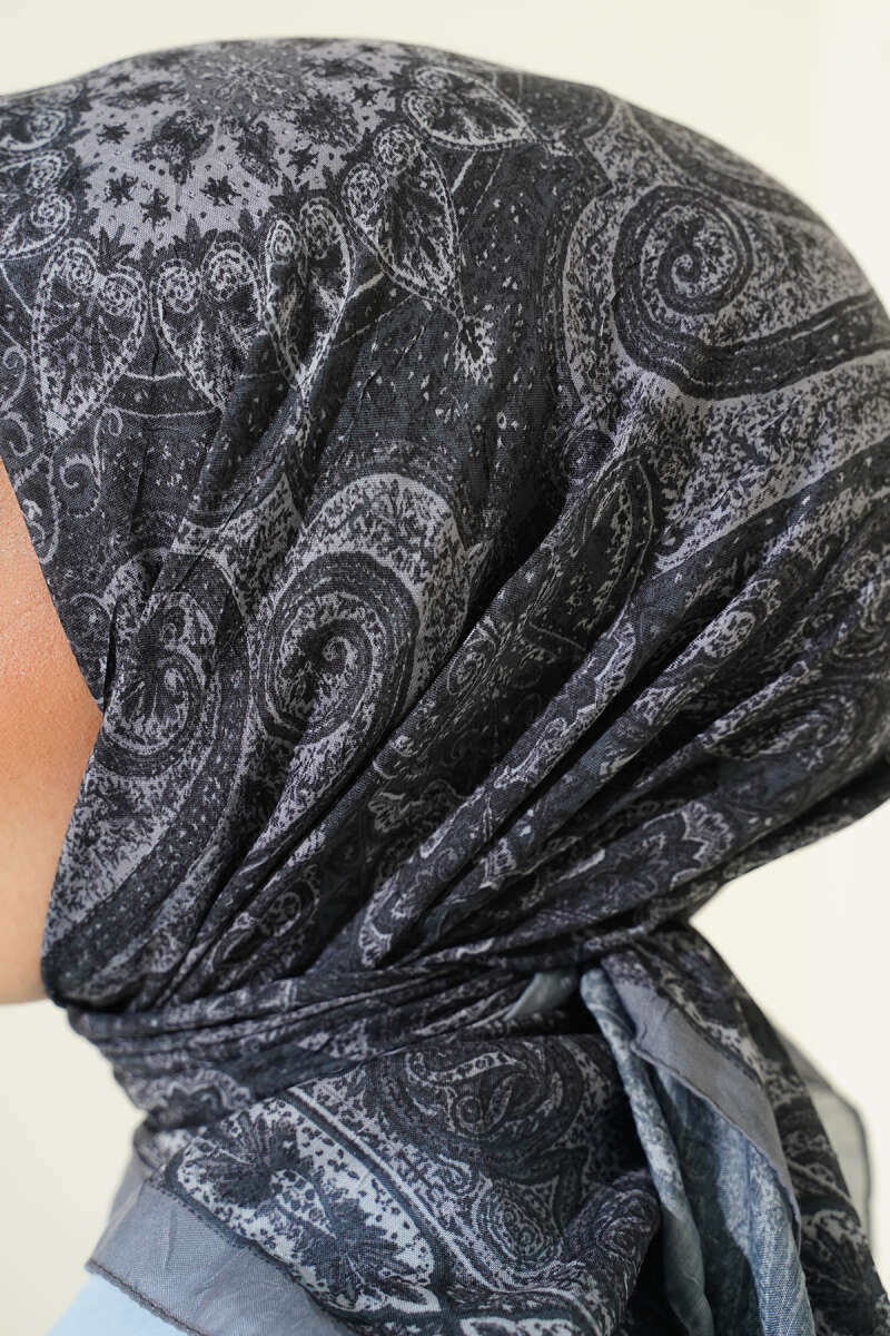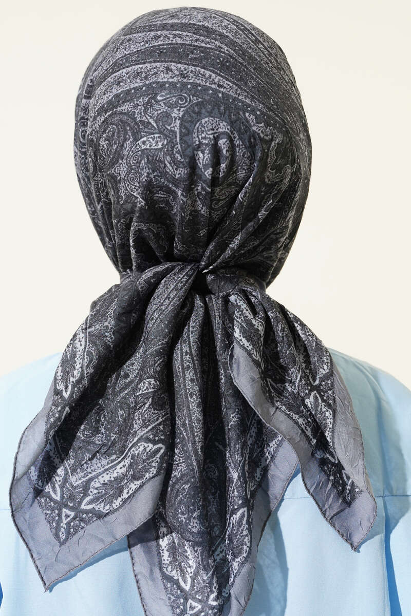 Retro Desen Bambu Kraş Eşarp Siyah Gri