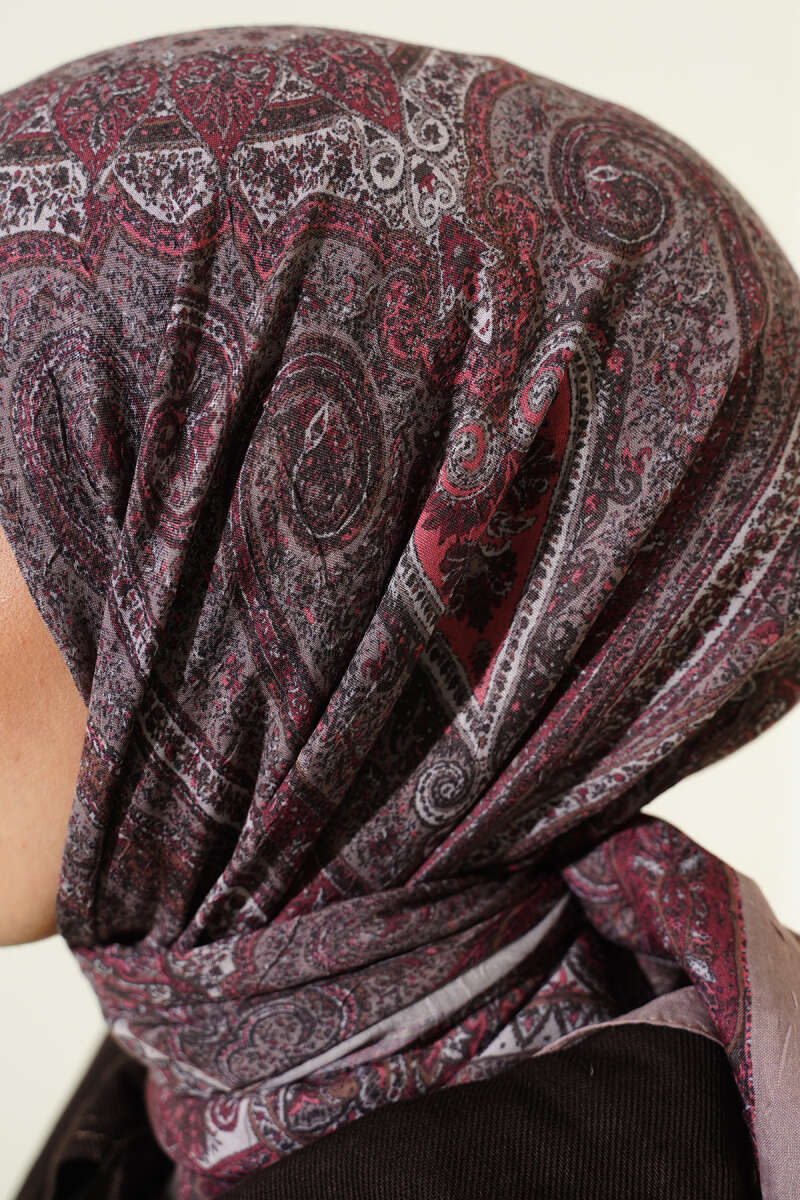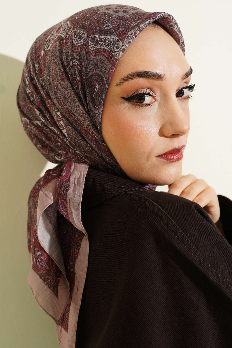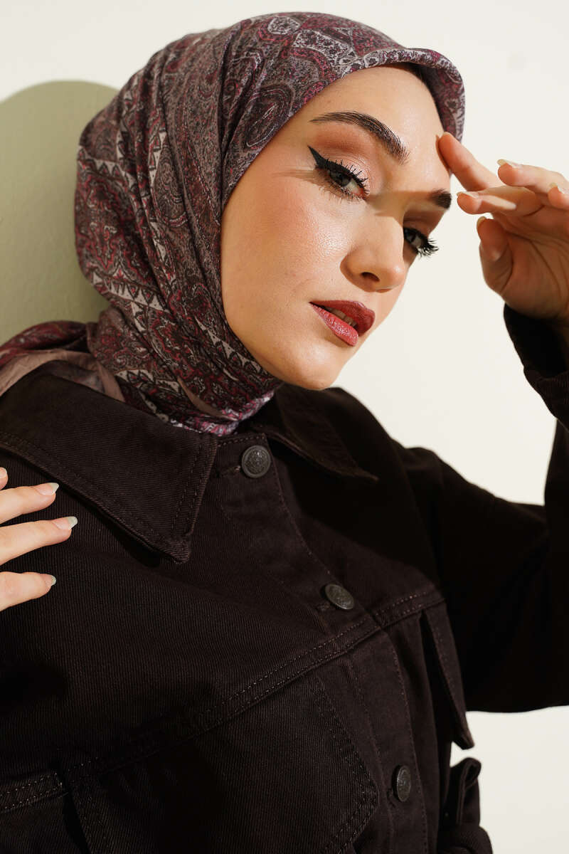 Retro Desen Bambu Kraş Eşarp Acı Kahve