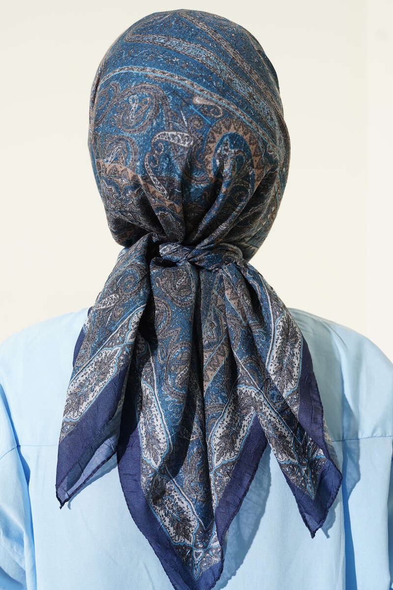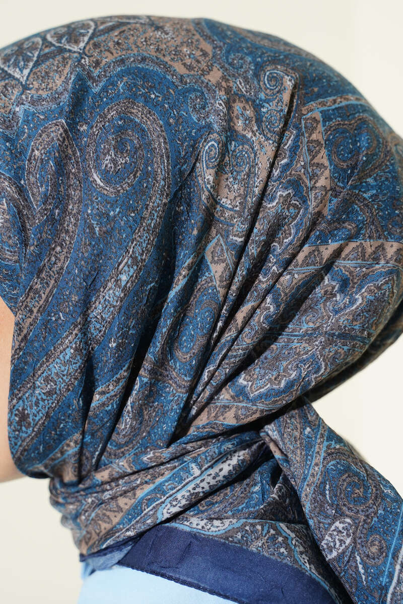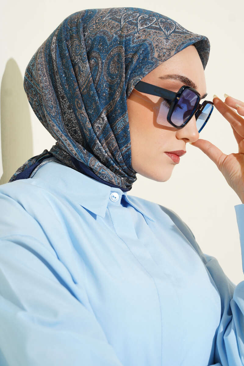 Retro Desen Bambu Kraş Eşarp Soft Mavi