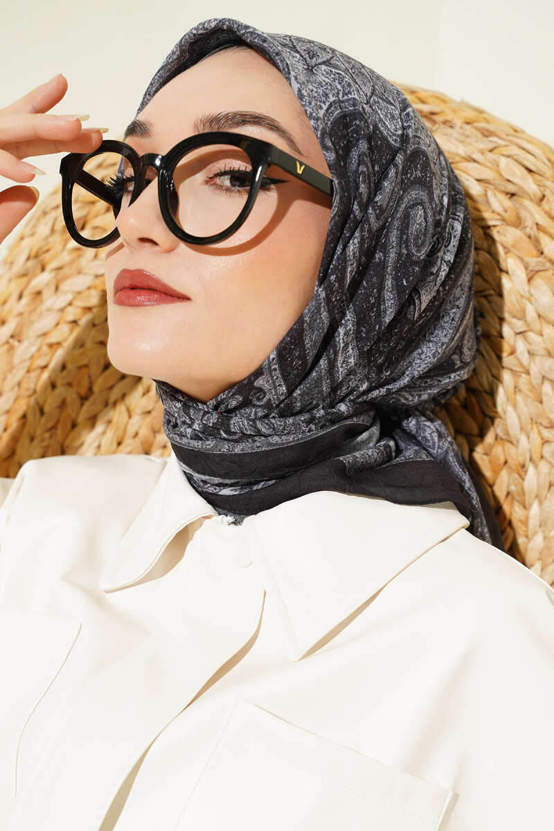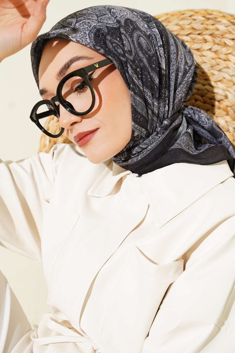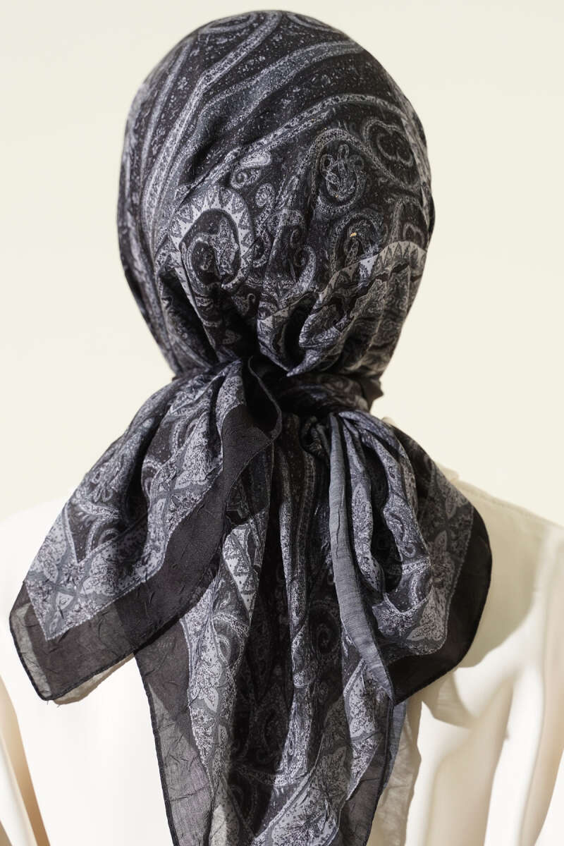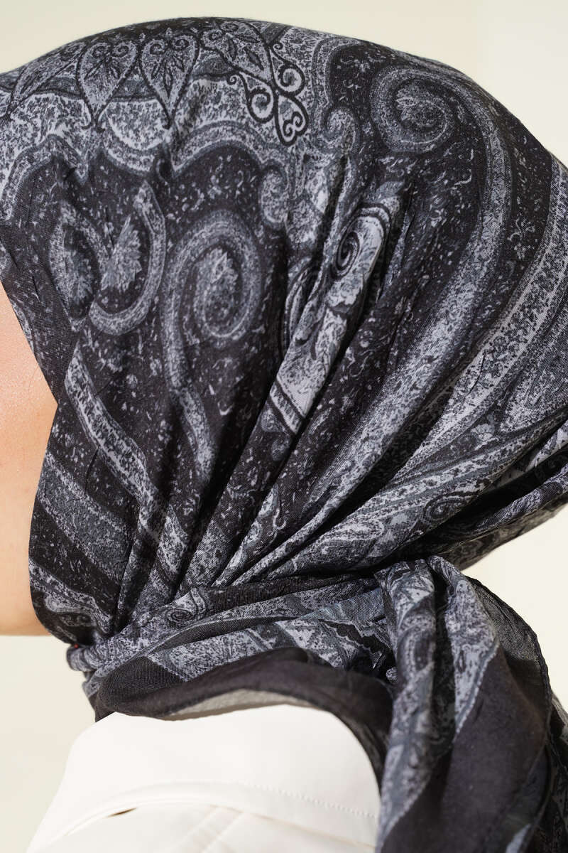 Retro Desen Bambu Kraş Eşarp Siyah Gri