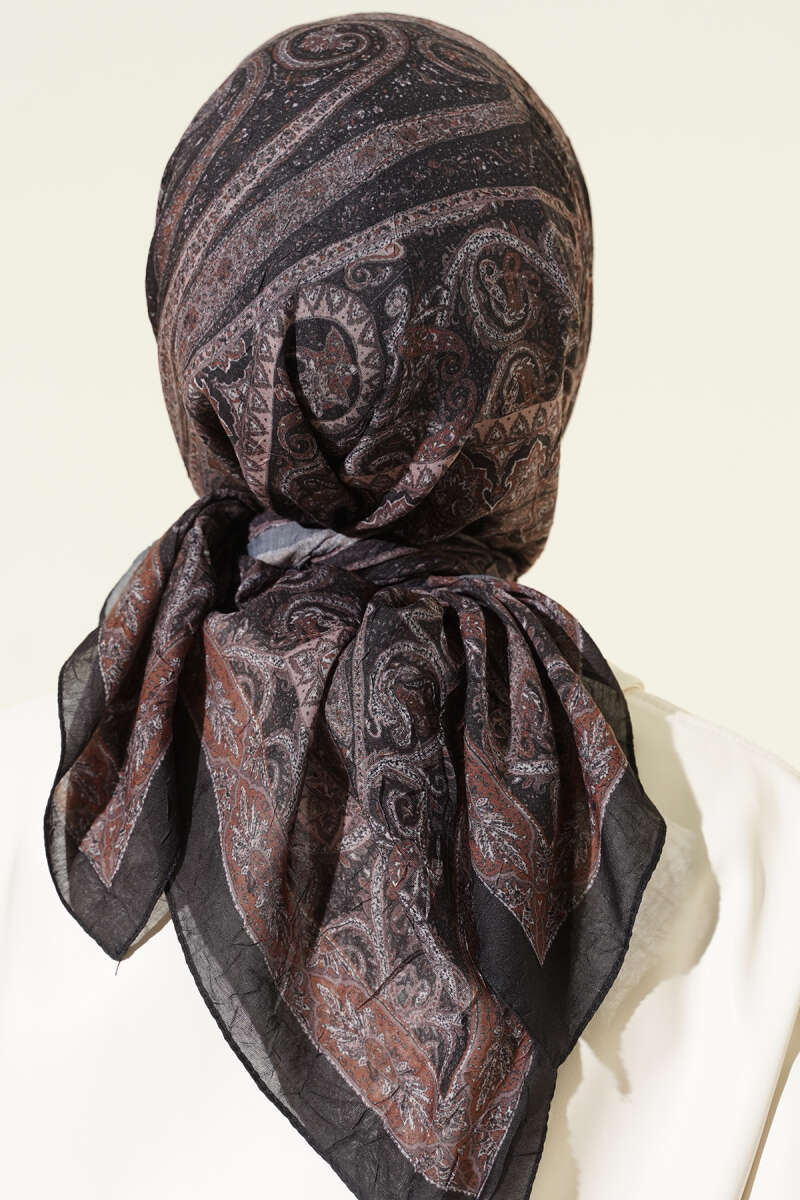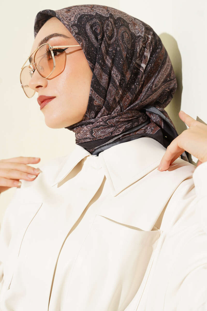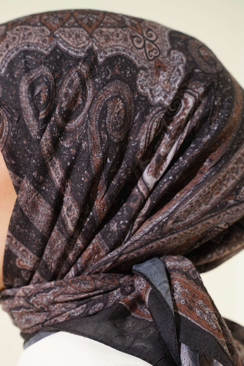Retro Desen Bambu Kraş Eşarp Acı Kahve