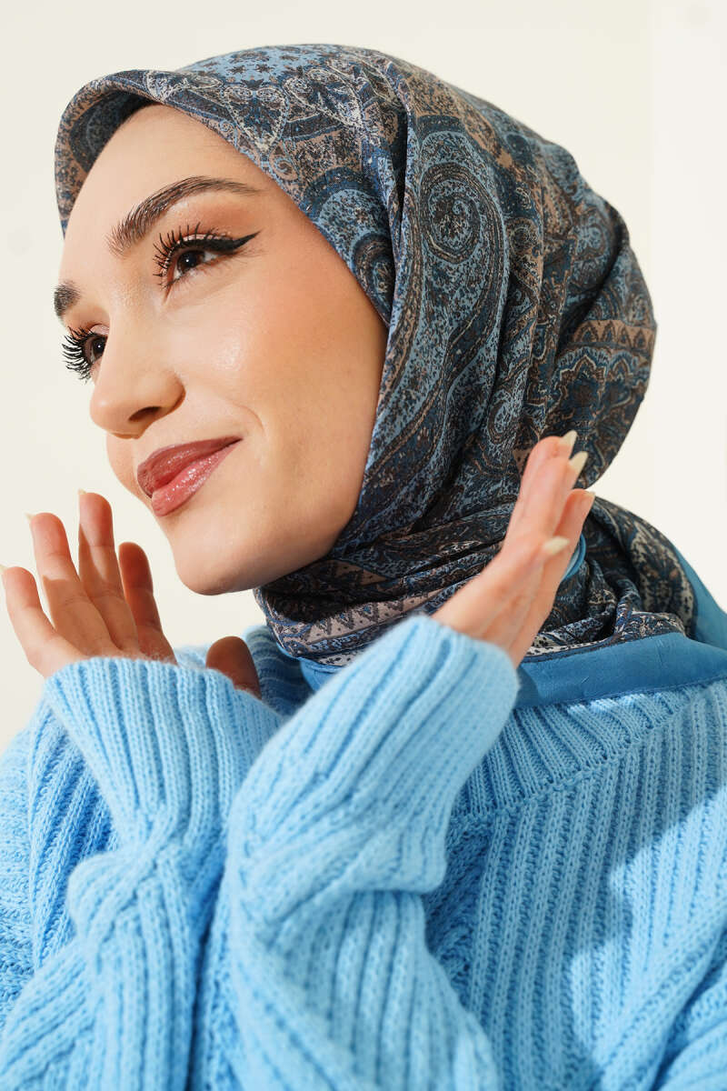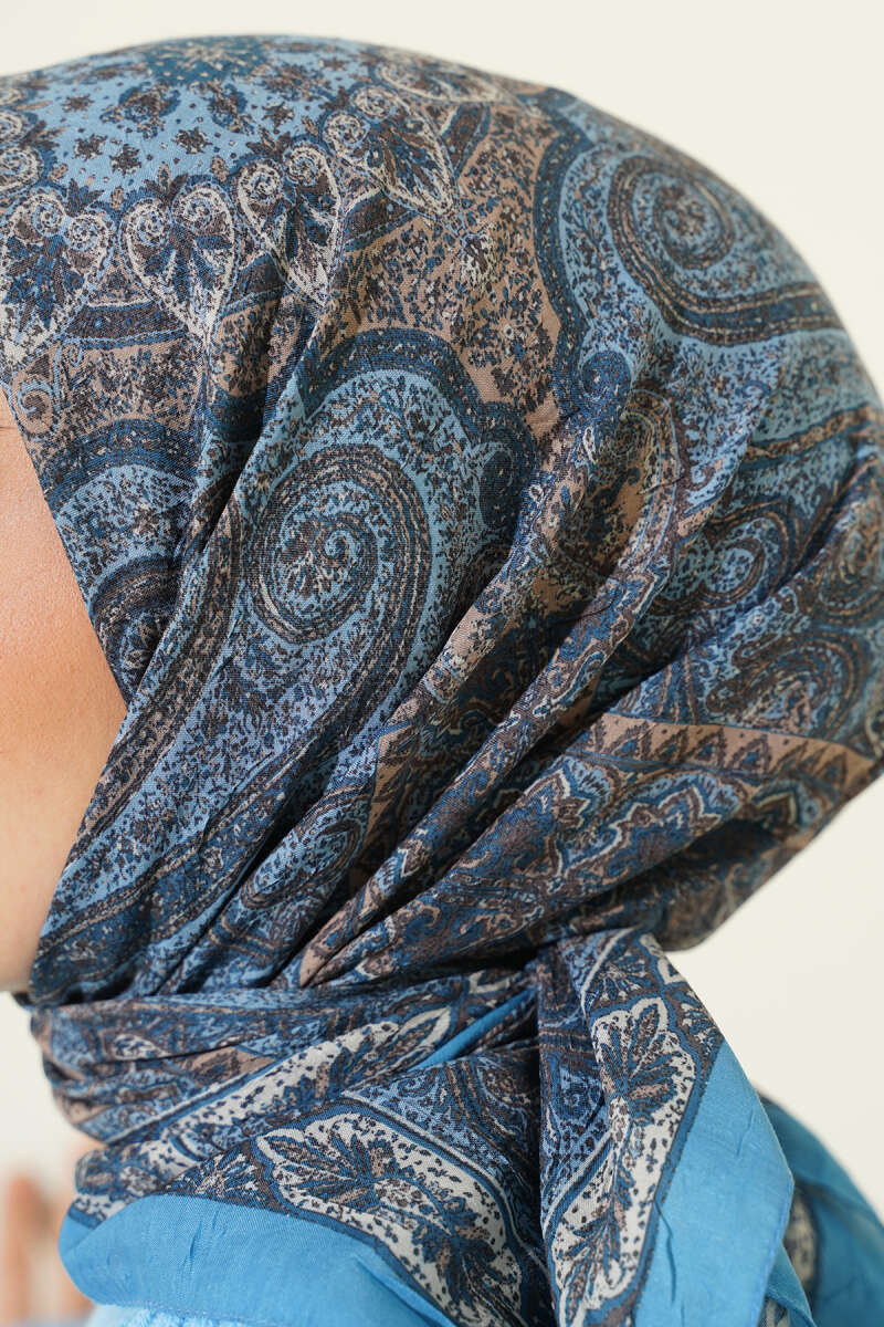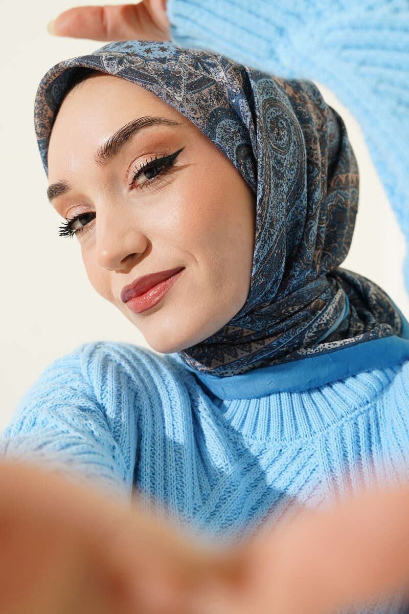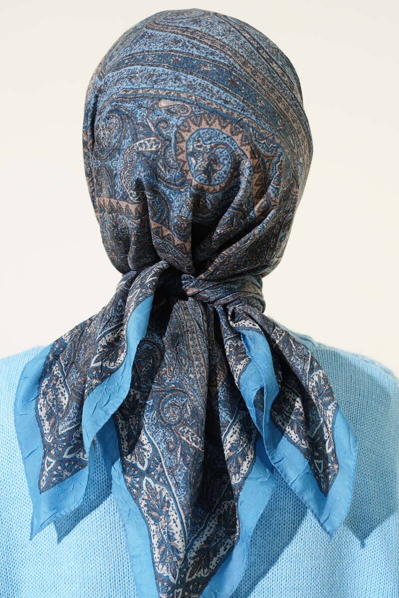 Retro Desen Bambu Kraş Eşarp Lacivert