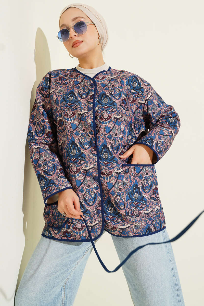 Dik Yaka Fermuarlı Etekli Kot İkili Takım Açık Mavi