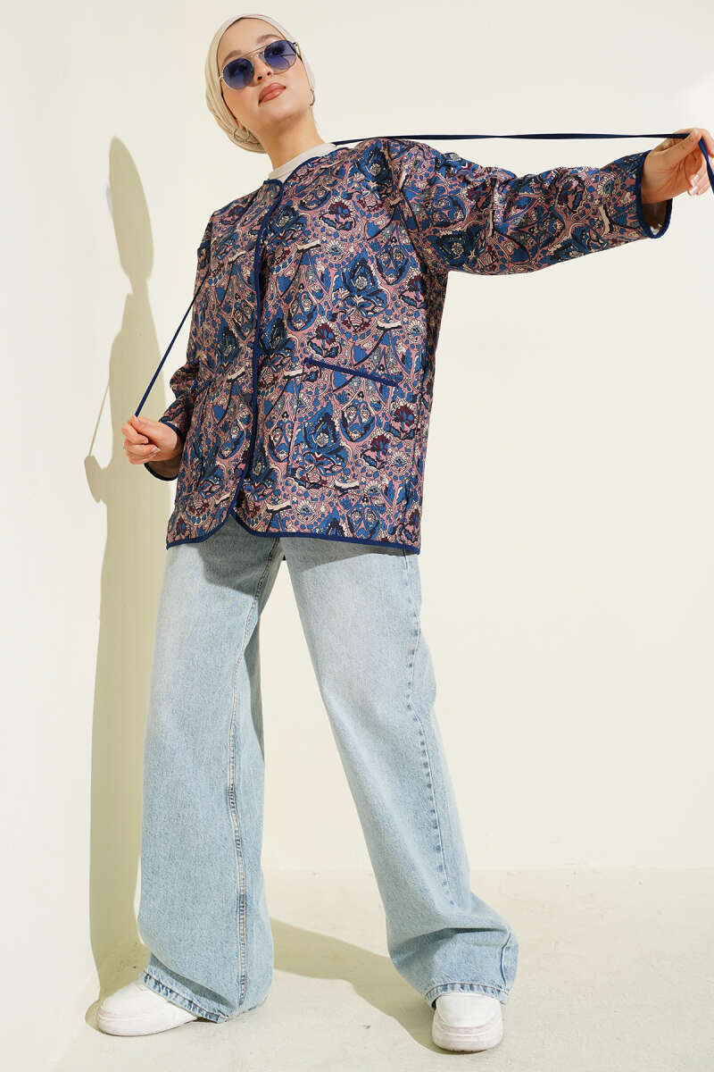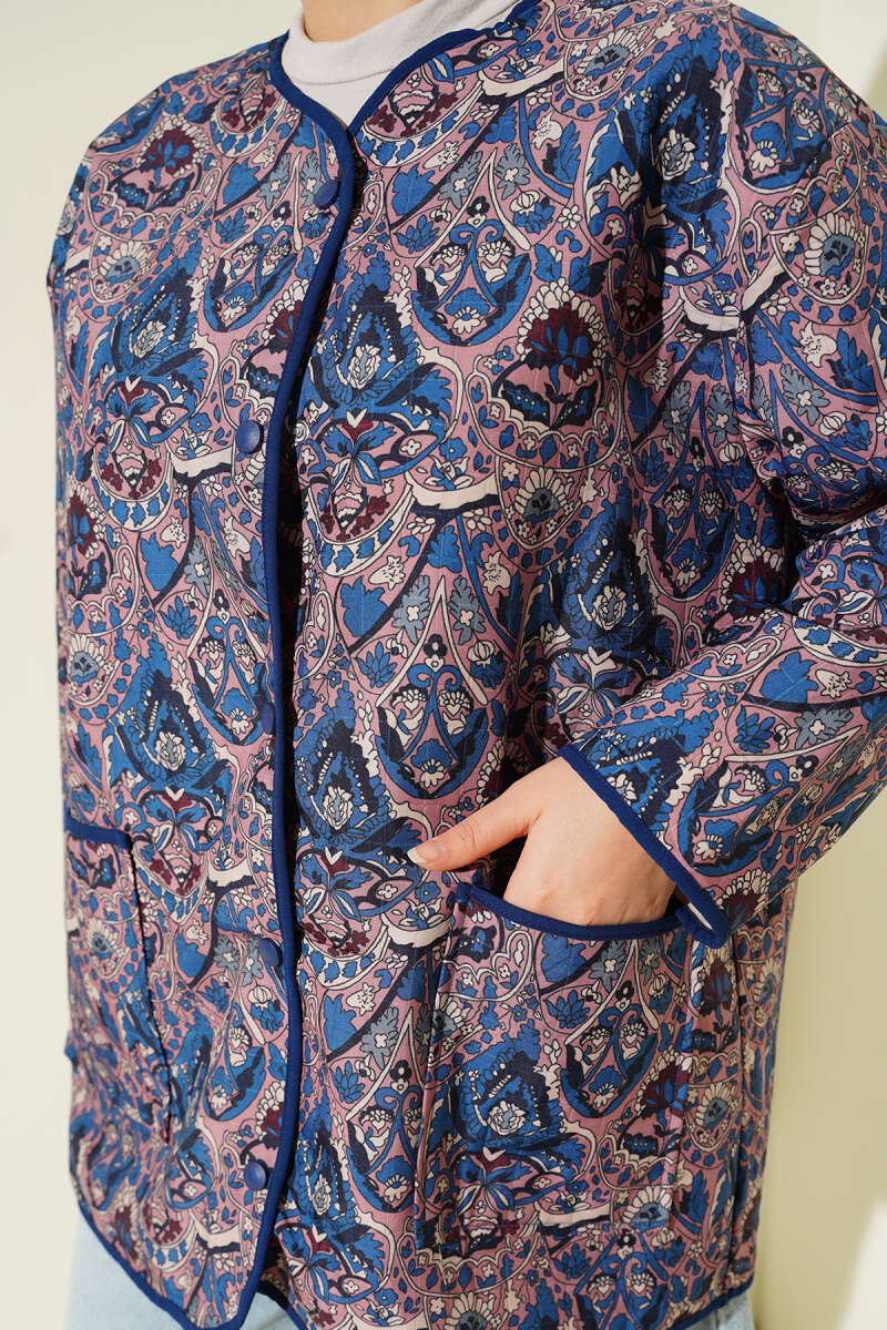 Tek Düğmeli Kemerli Sakallı Ceket Mor