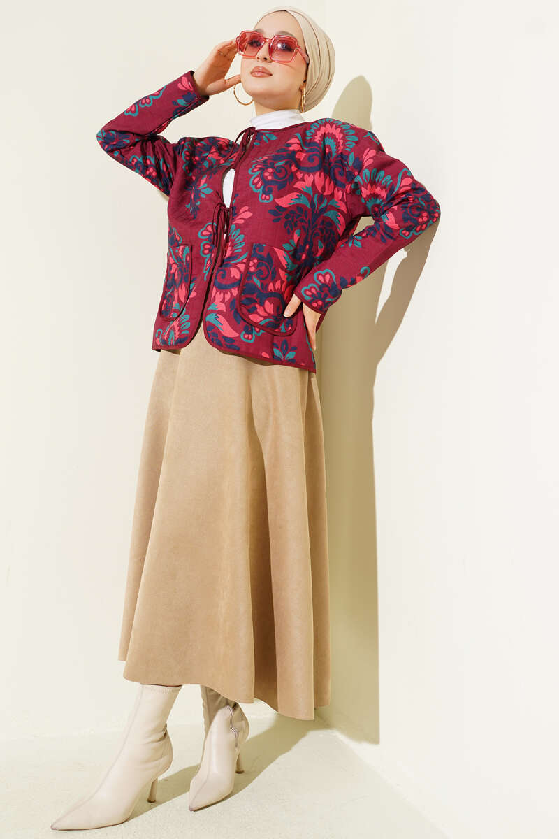 Deri Garnili Sakallı Ceket Bordo