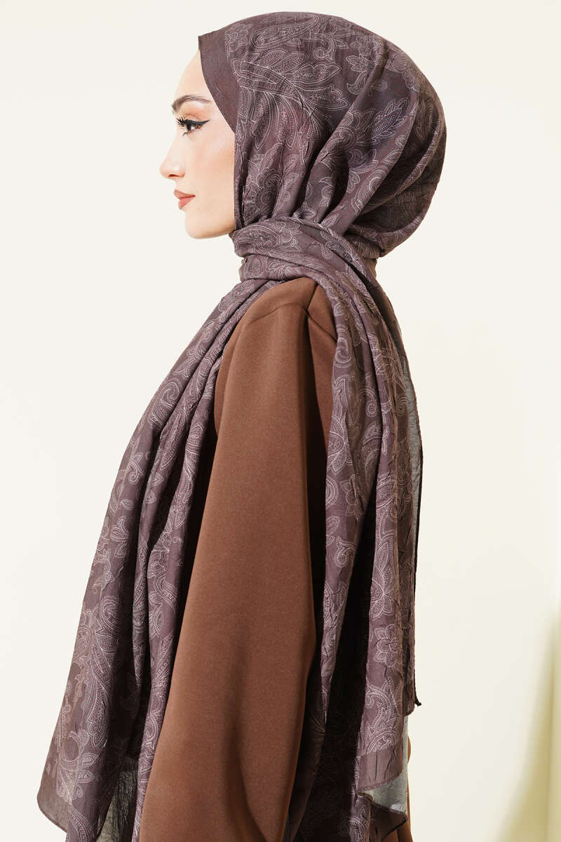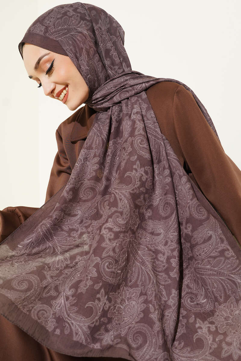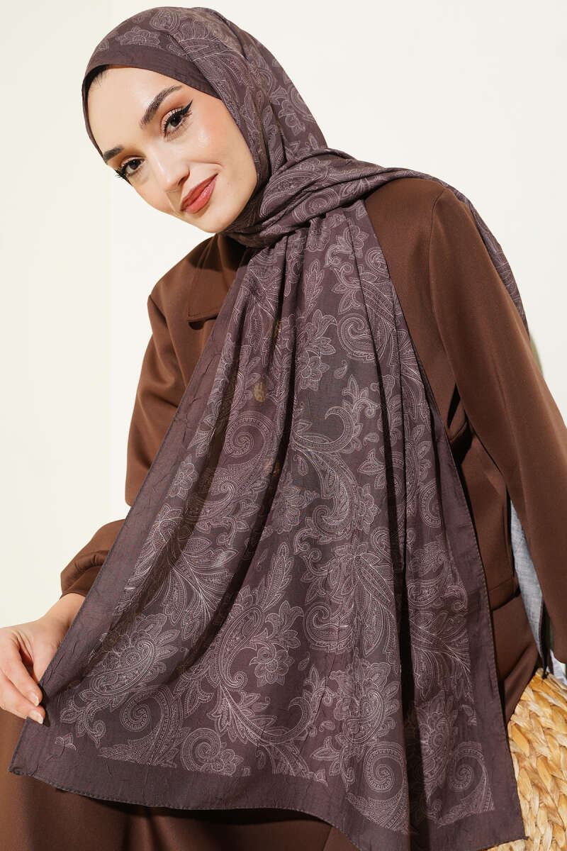 Retro Desenli Bambu Kraş Şal Acı Kahve