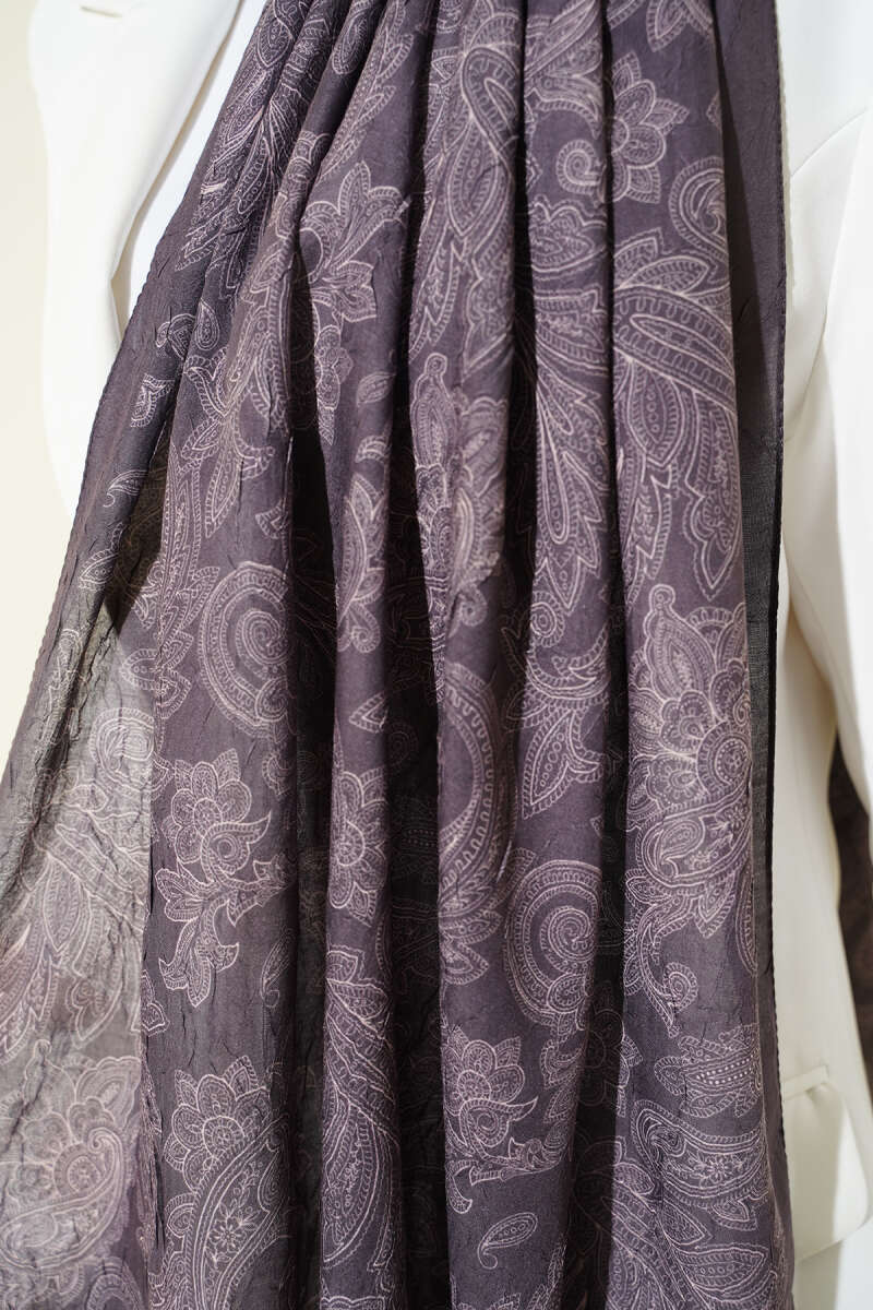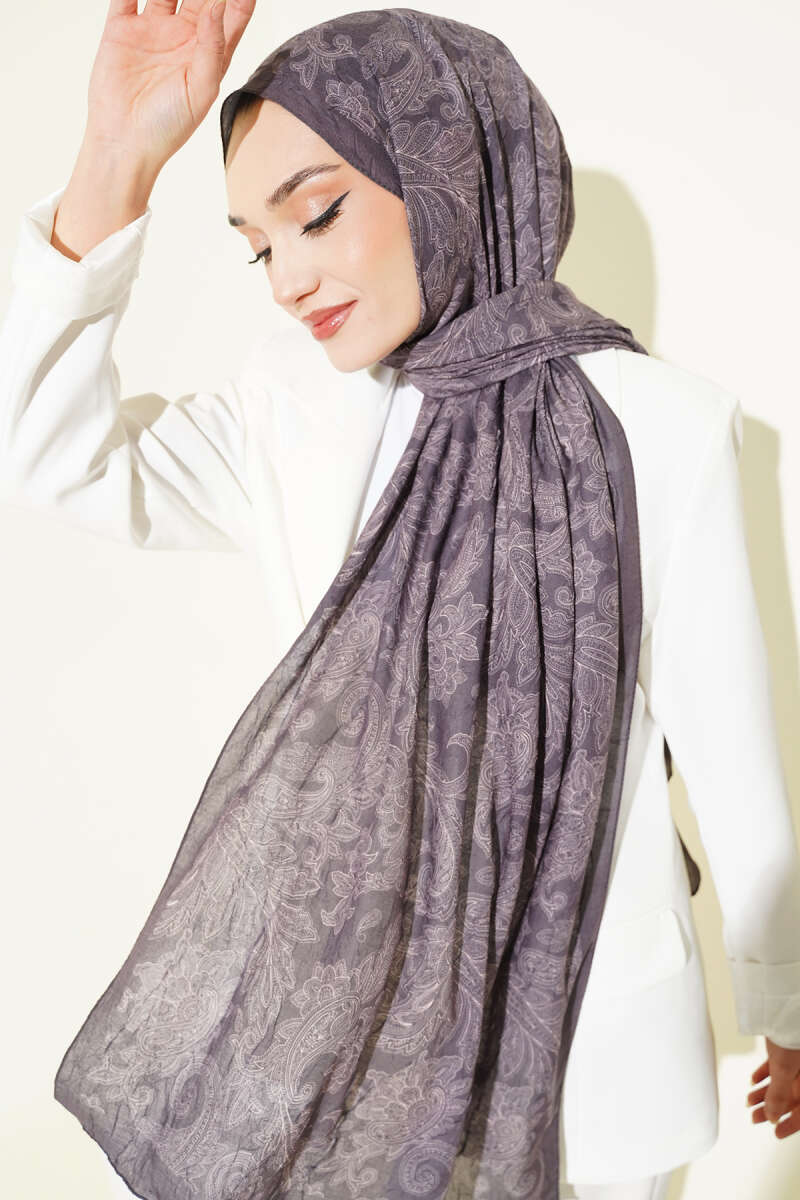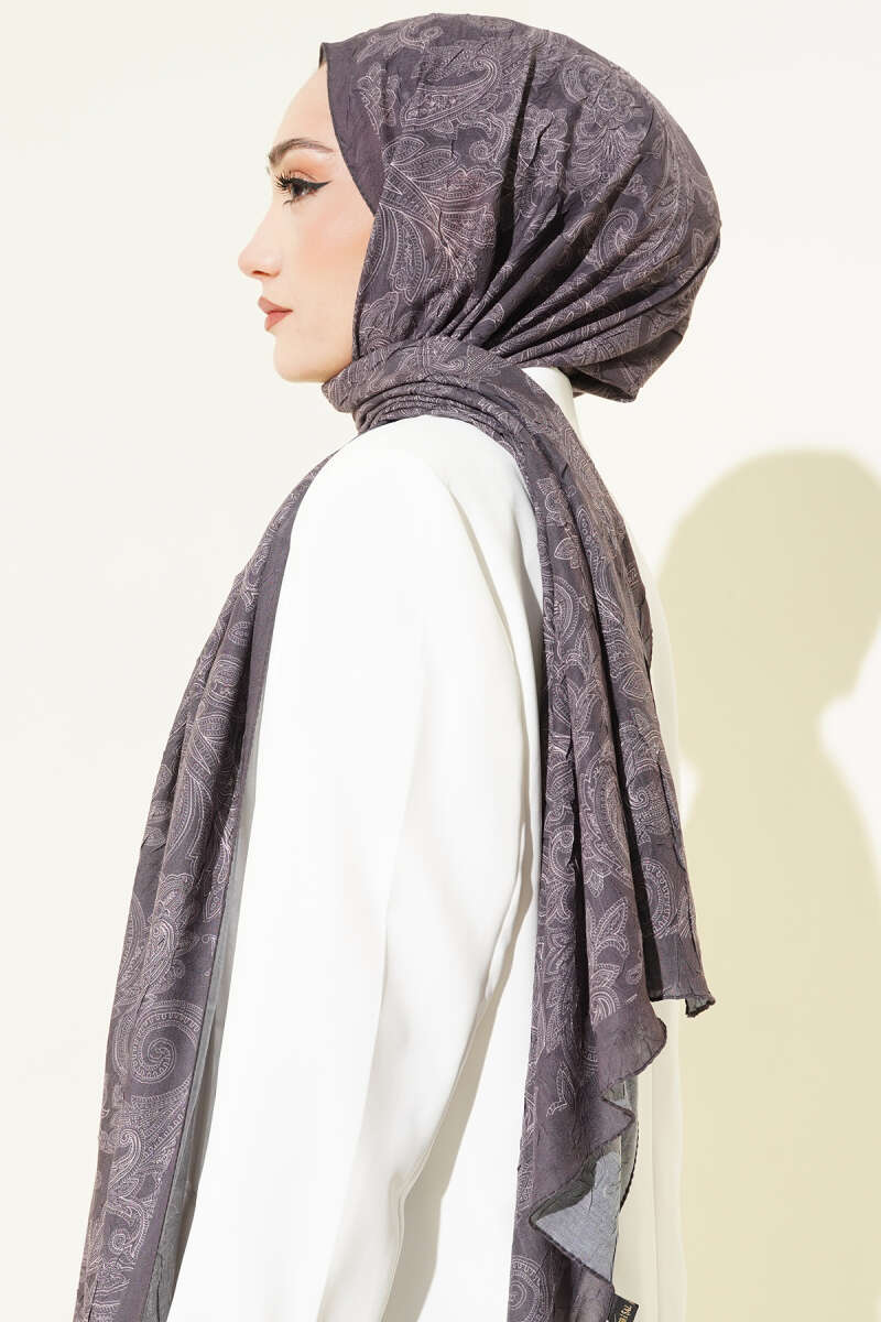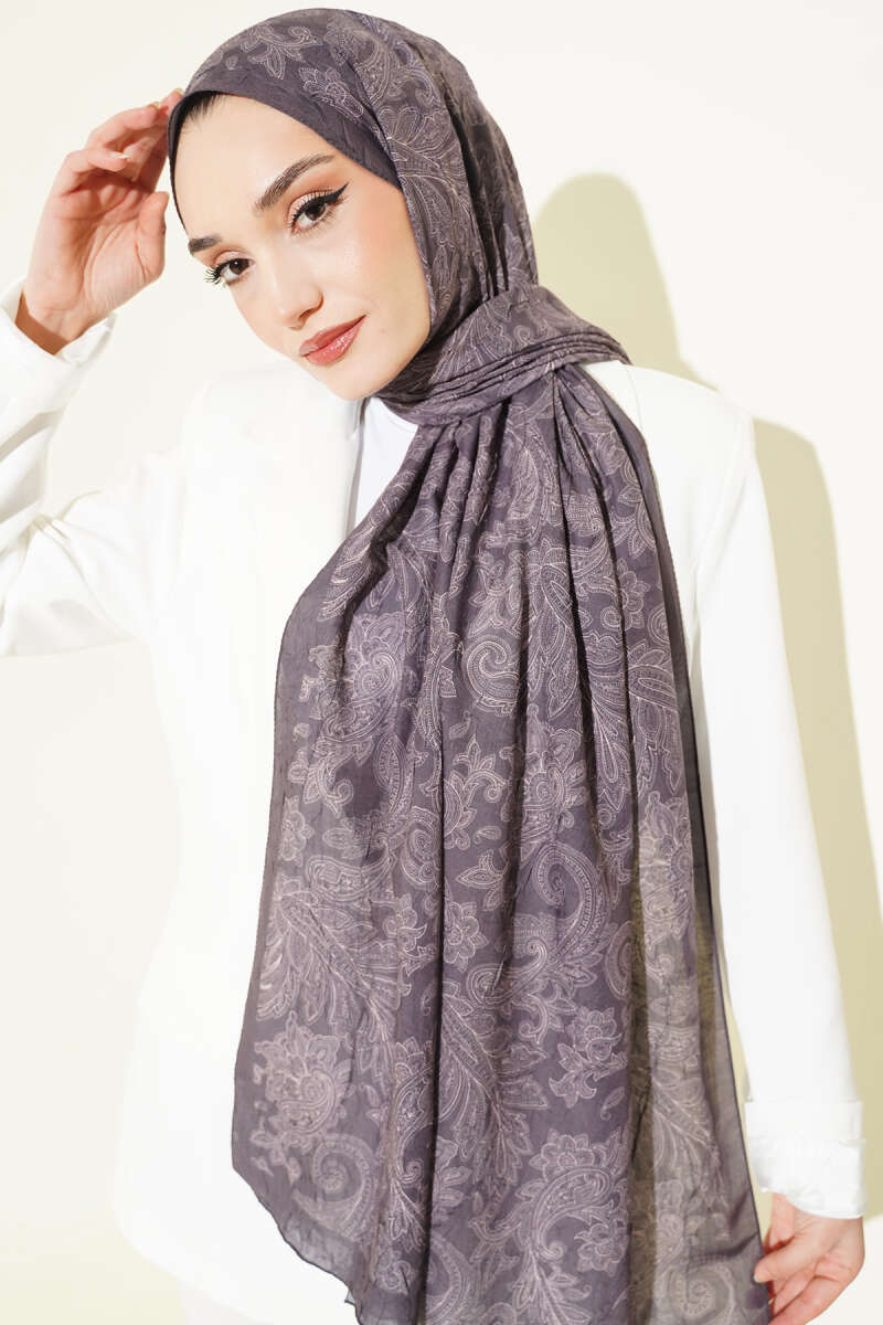 Şerit Geçişli Desenli Bambu Eşarp Füme