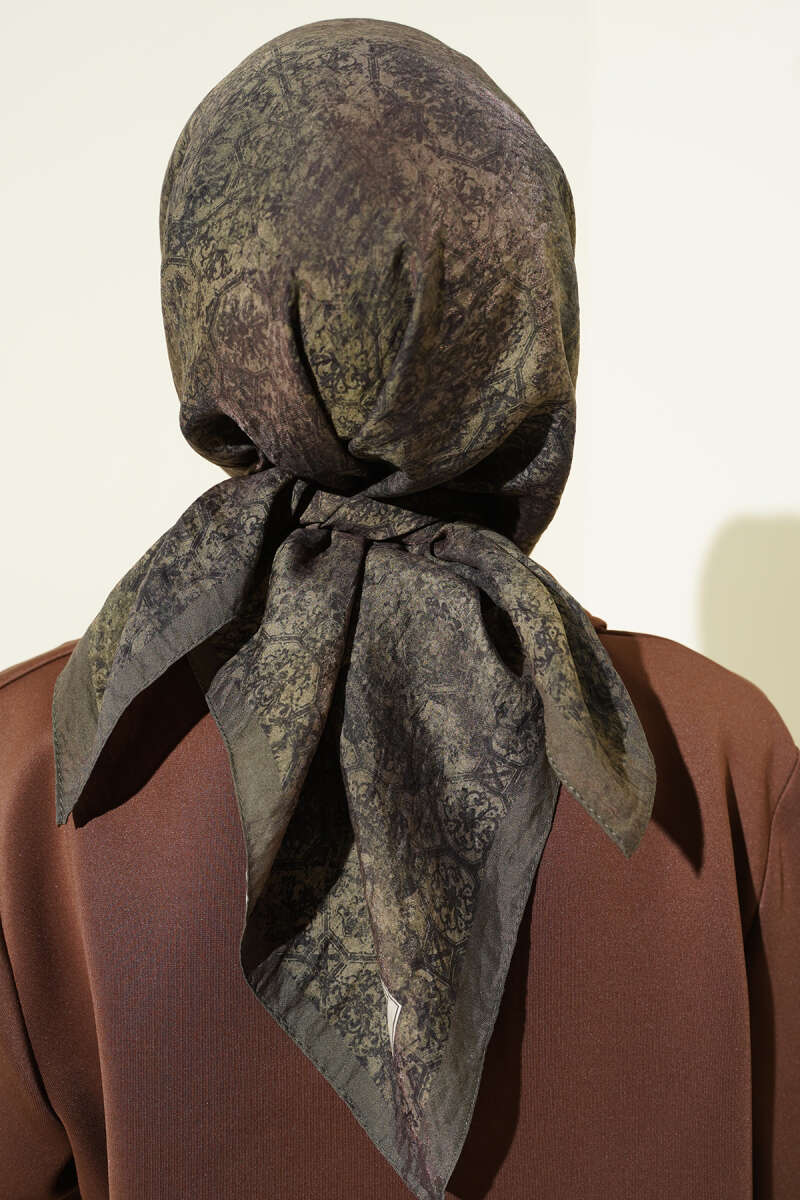 Şerit Geçişli Desenli Bambu Eşarp Haki