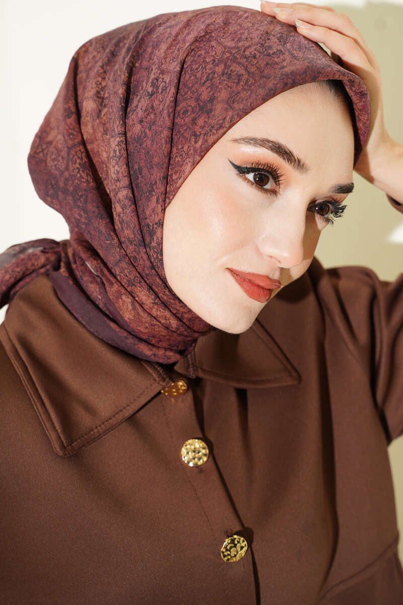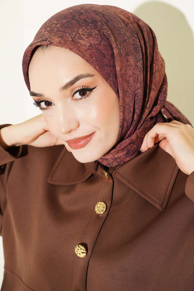 Şerit Geçişli Desenli Bambu Eşarp Kahve
