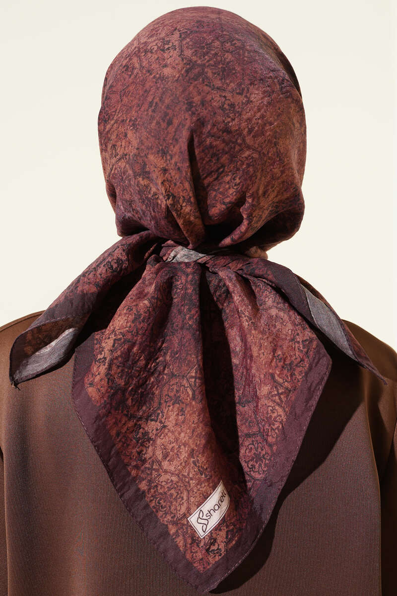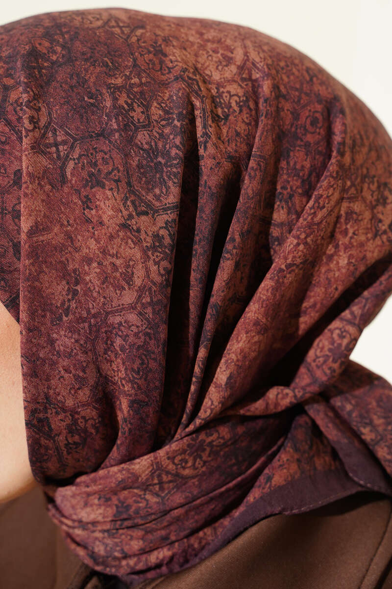 Şerit Geçişli Desenli Bambu Eşarp Kestane