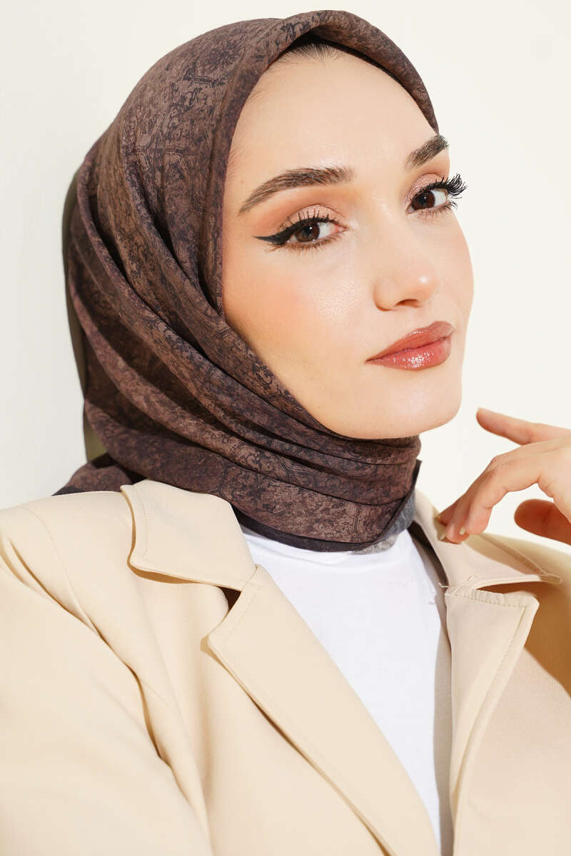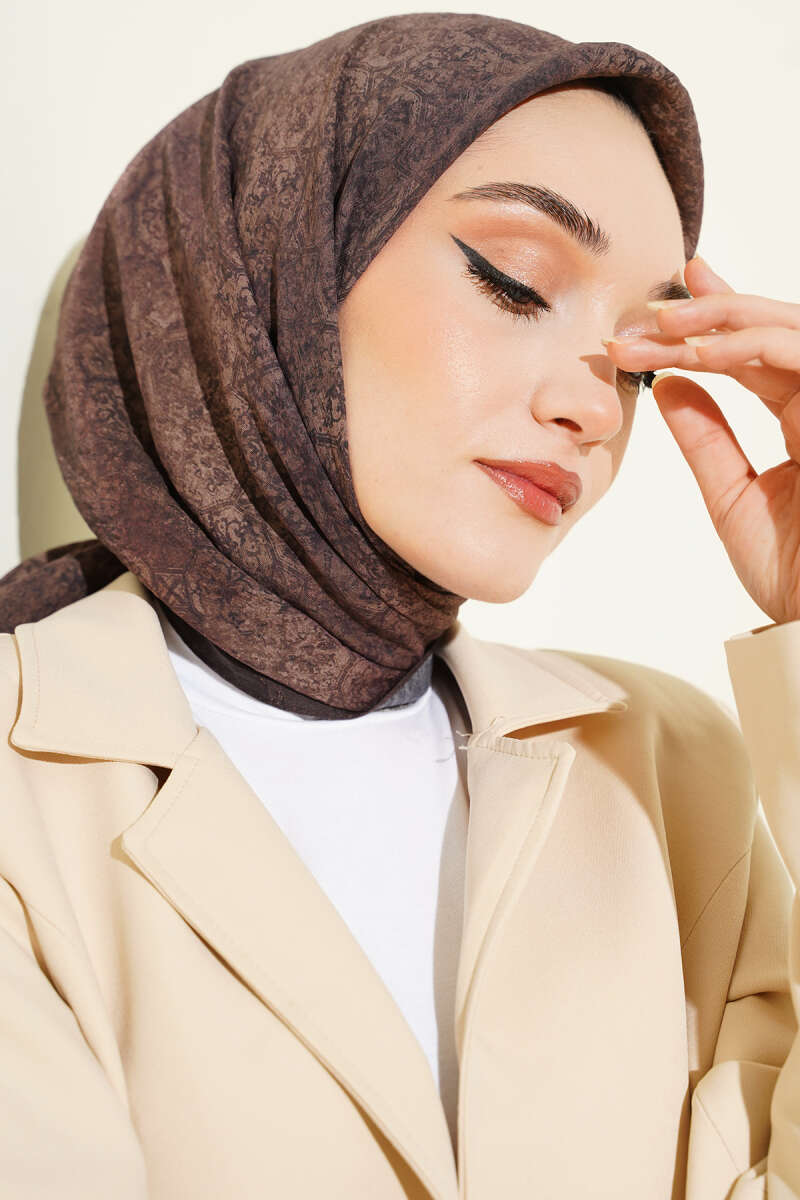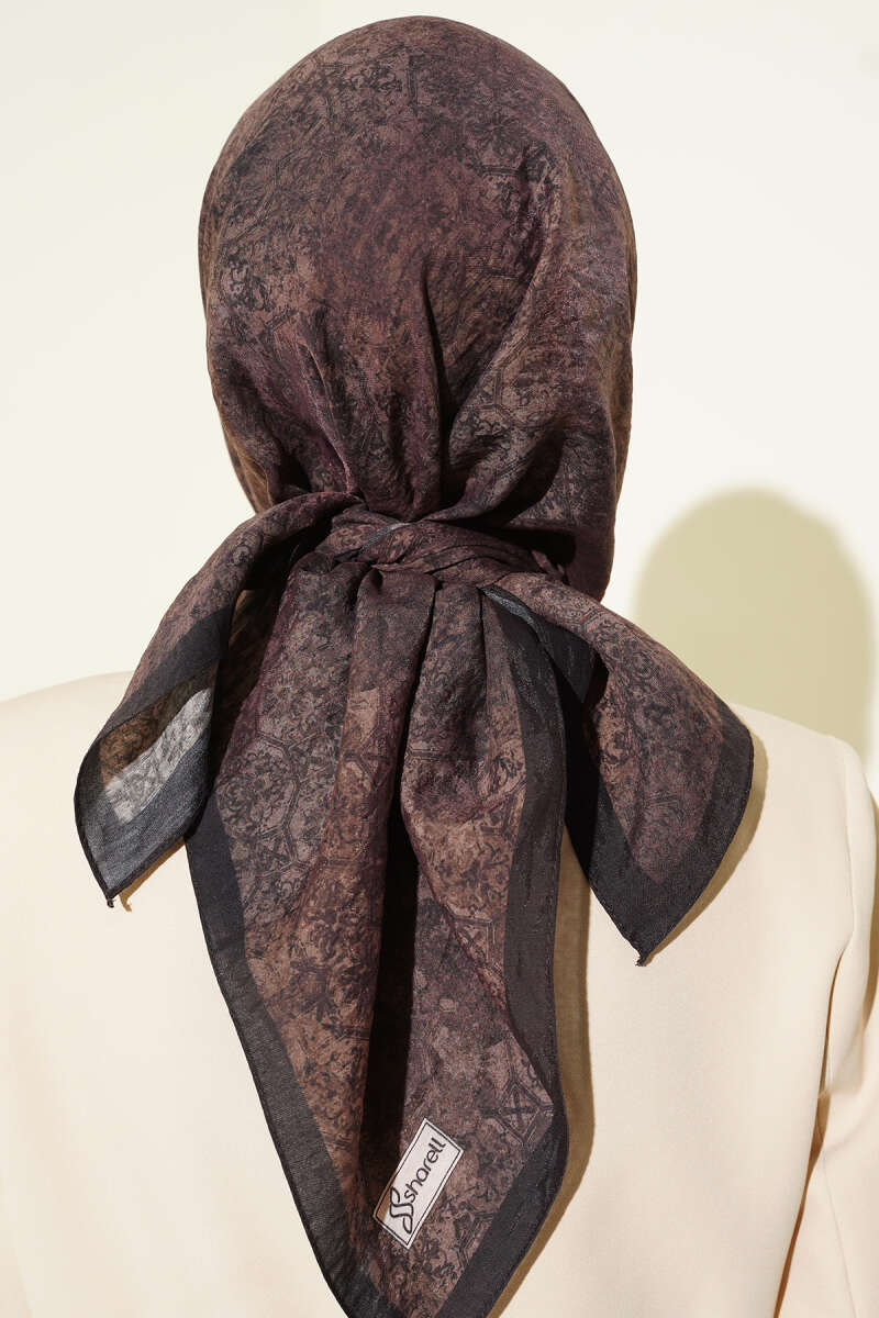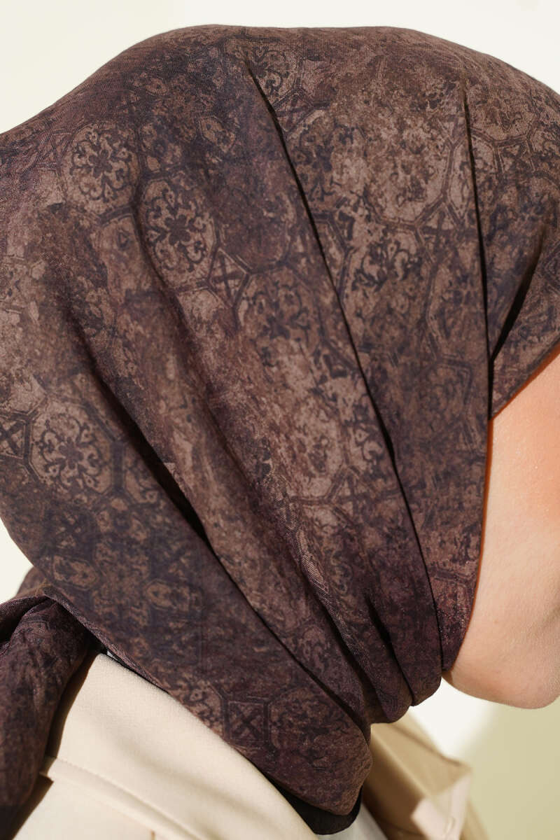 Retro Desenli Bambu Kraş Şal Acı Kahve