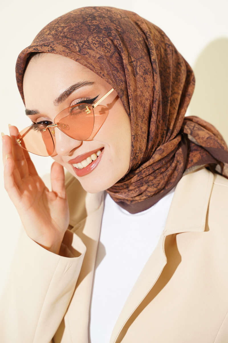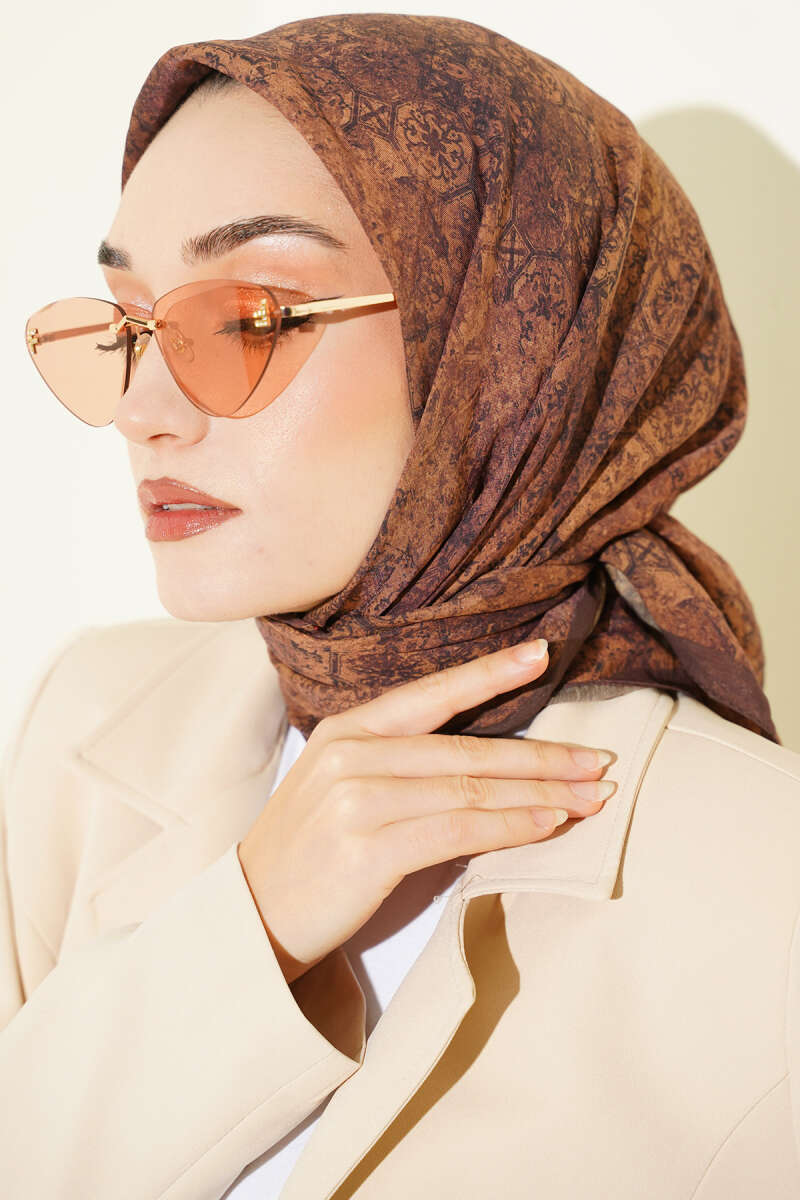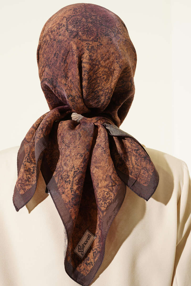Retro Desenli Bambu Kraş Şal Acı Kahve