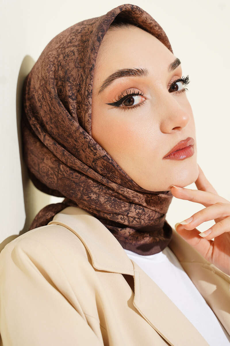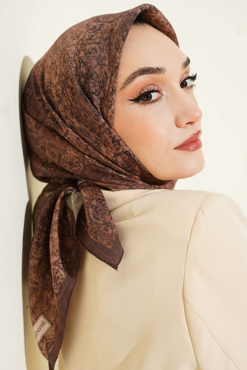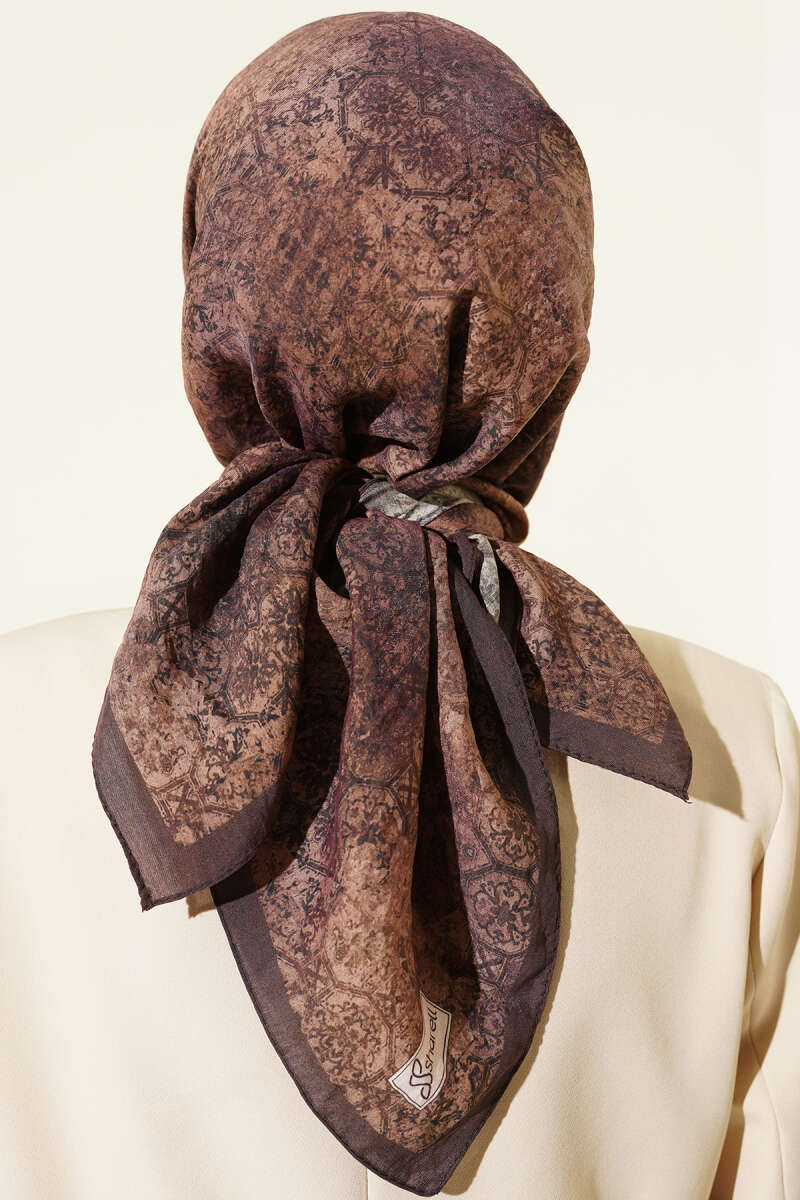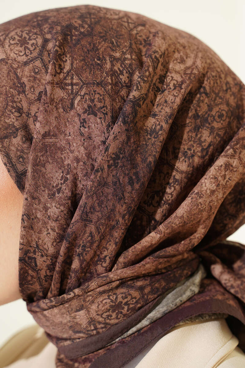 Retro Desenli Bambu Kraş Şal Acı Kahve