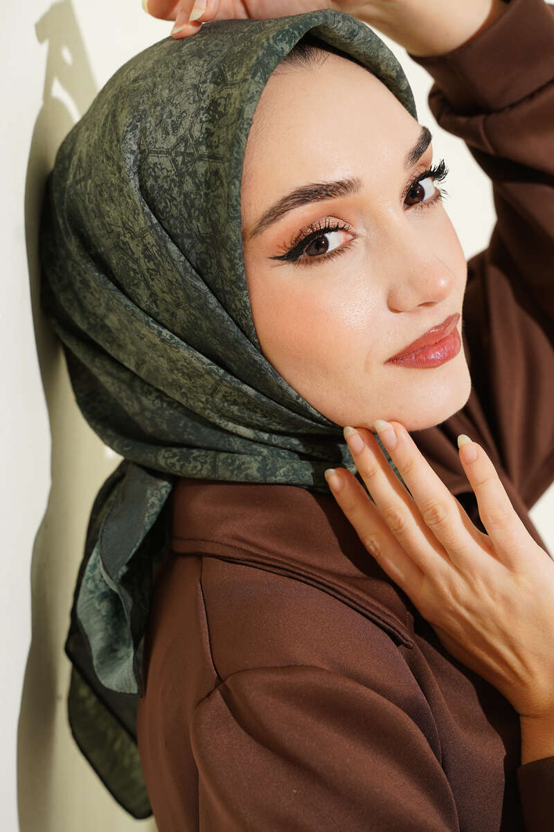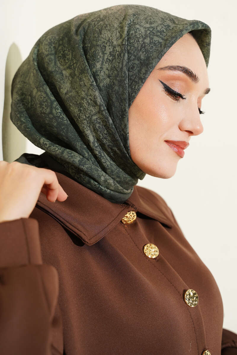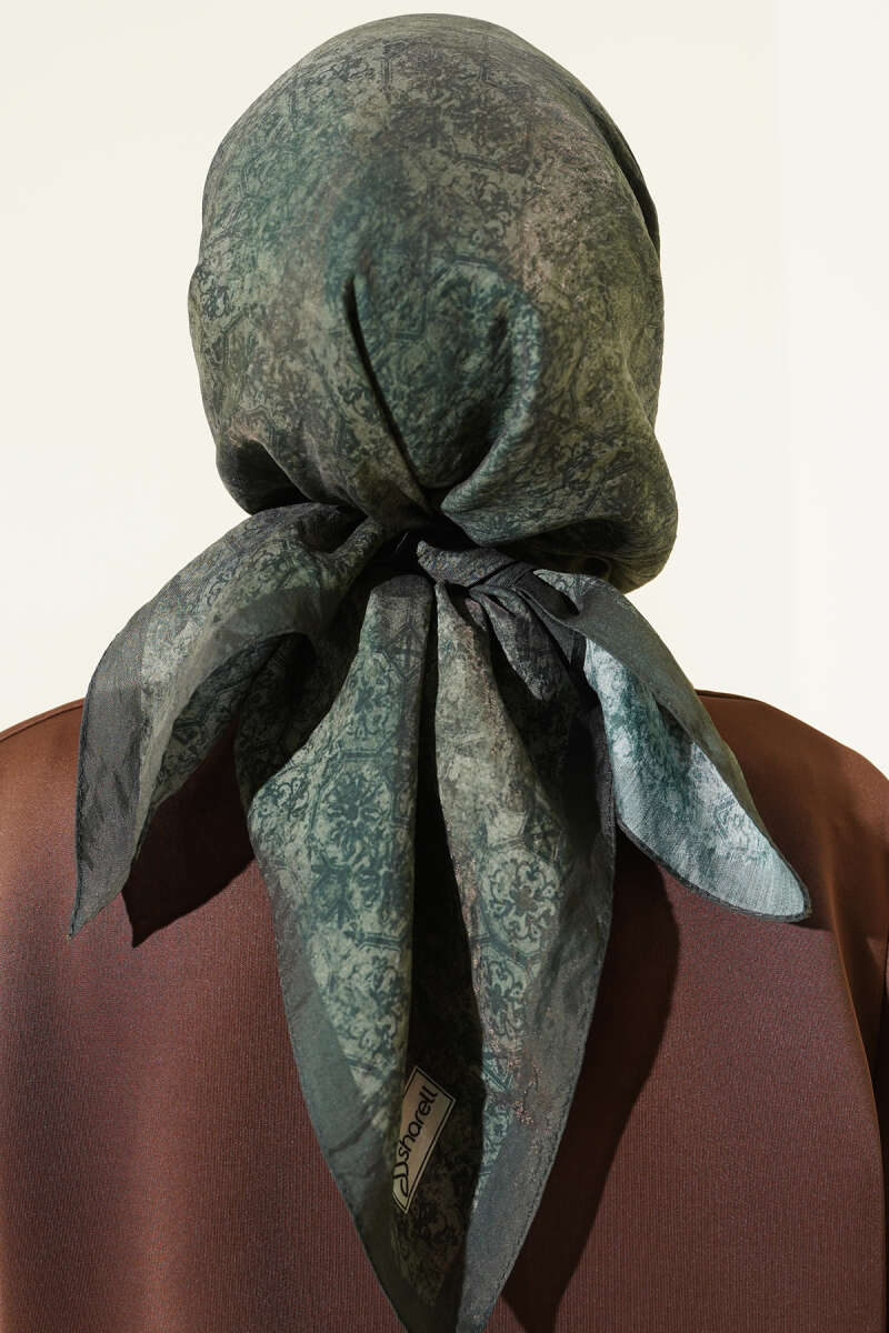Şerit Geçişli Desenli Bambu Eşarp Haki