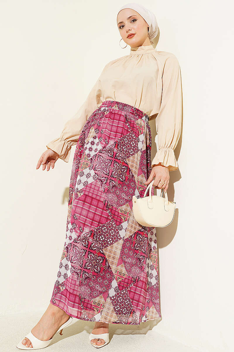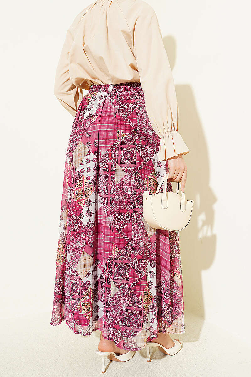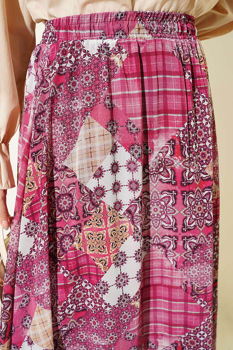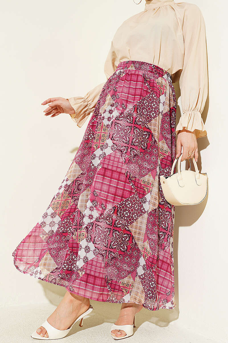 Puantiyeli Kat Kat Şifon Elbise Mürdüm