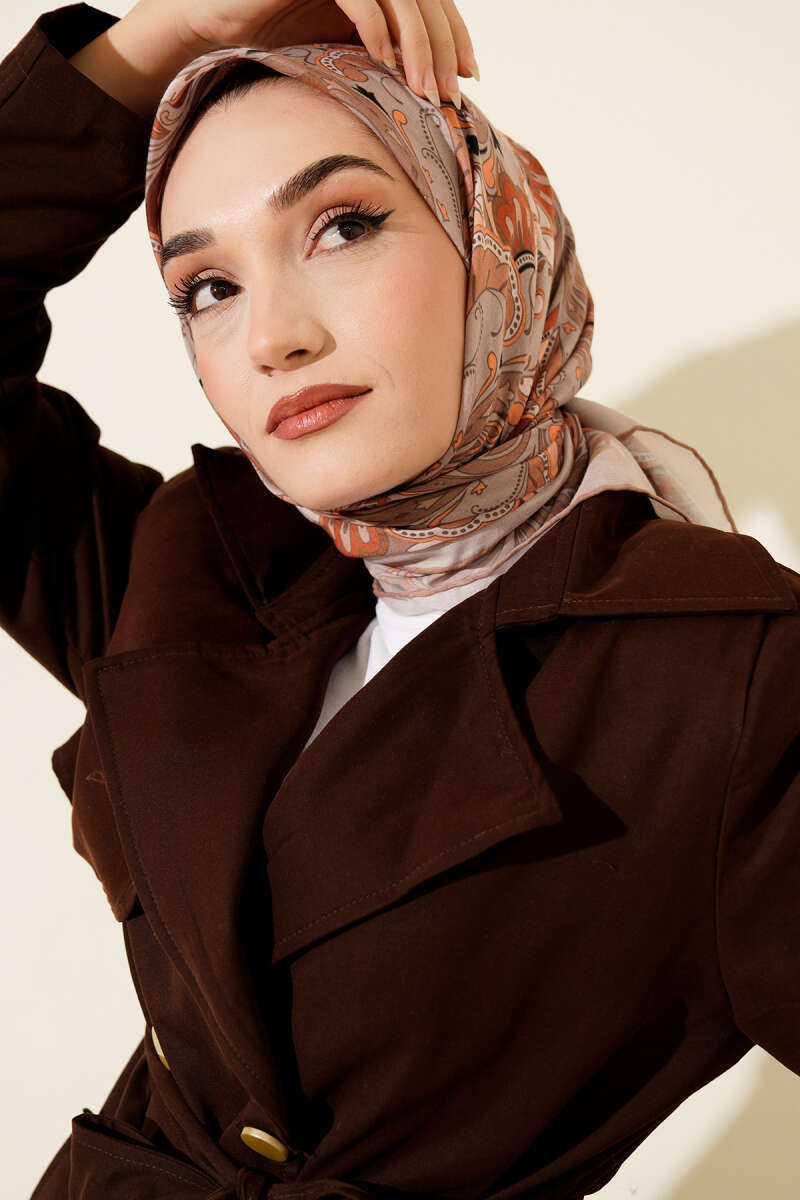 Desenli Acı Kahve Serisi Eşarp Asorti 8