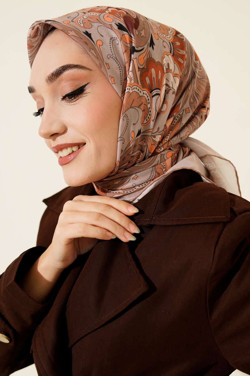 Desenli Acı Kahve Serisi Eşarp Asorti 12
