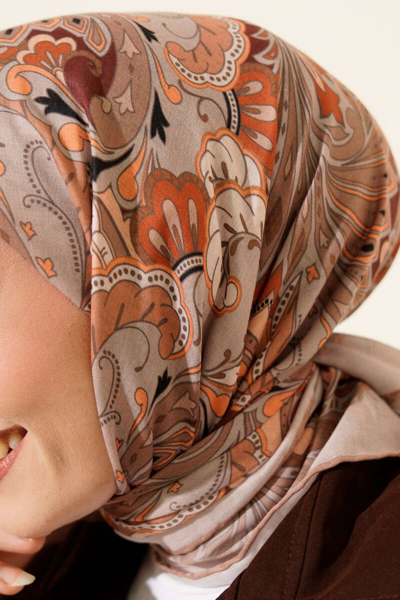 Desenli Acı Kahve Serisi Eşarp Asorti 1