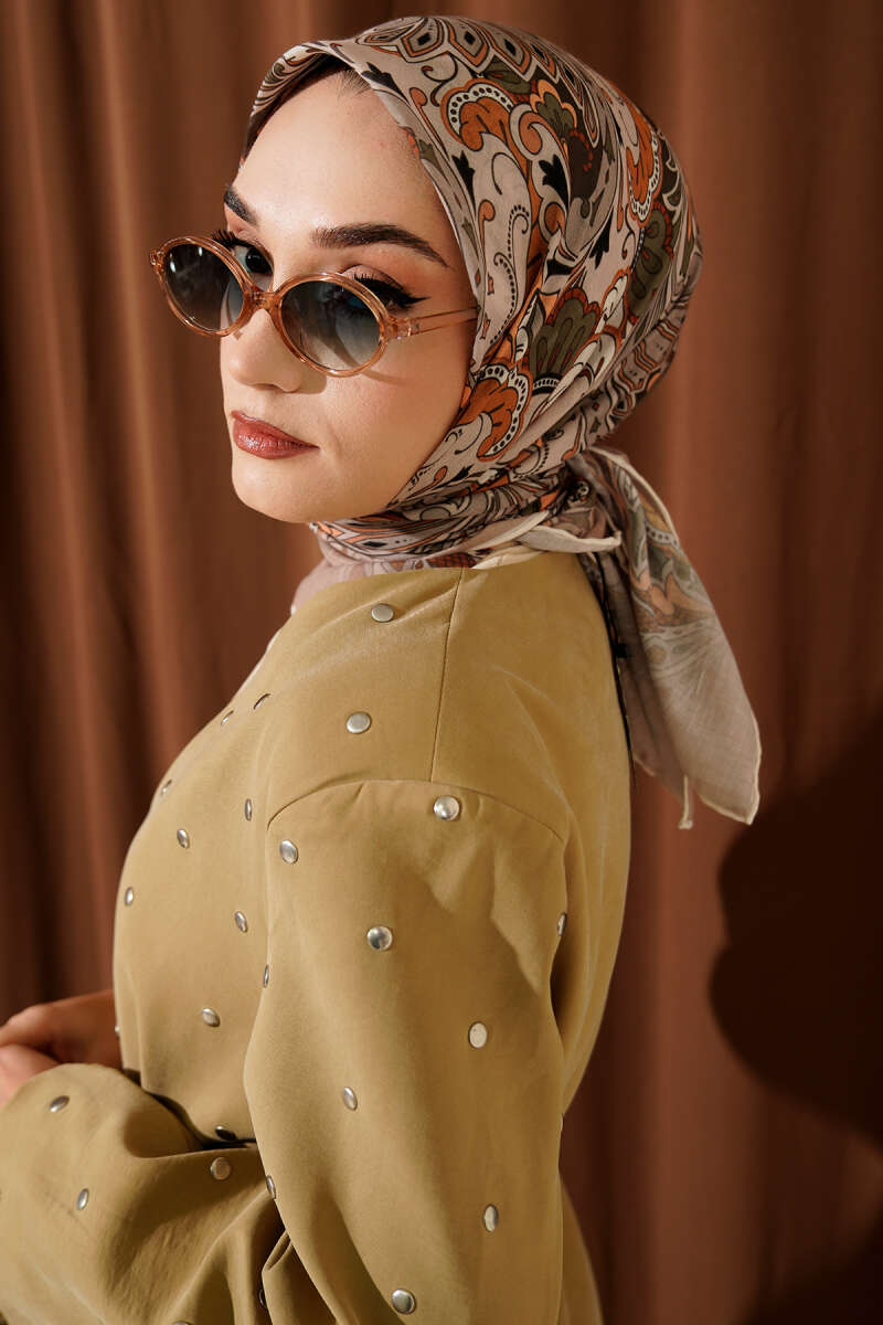Desenli Acı Kahve Serisi Eşarp Asorti 8