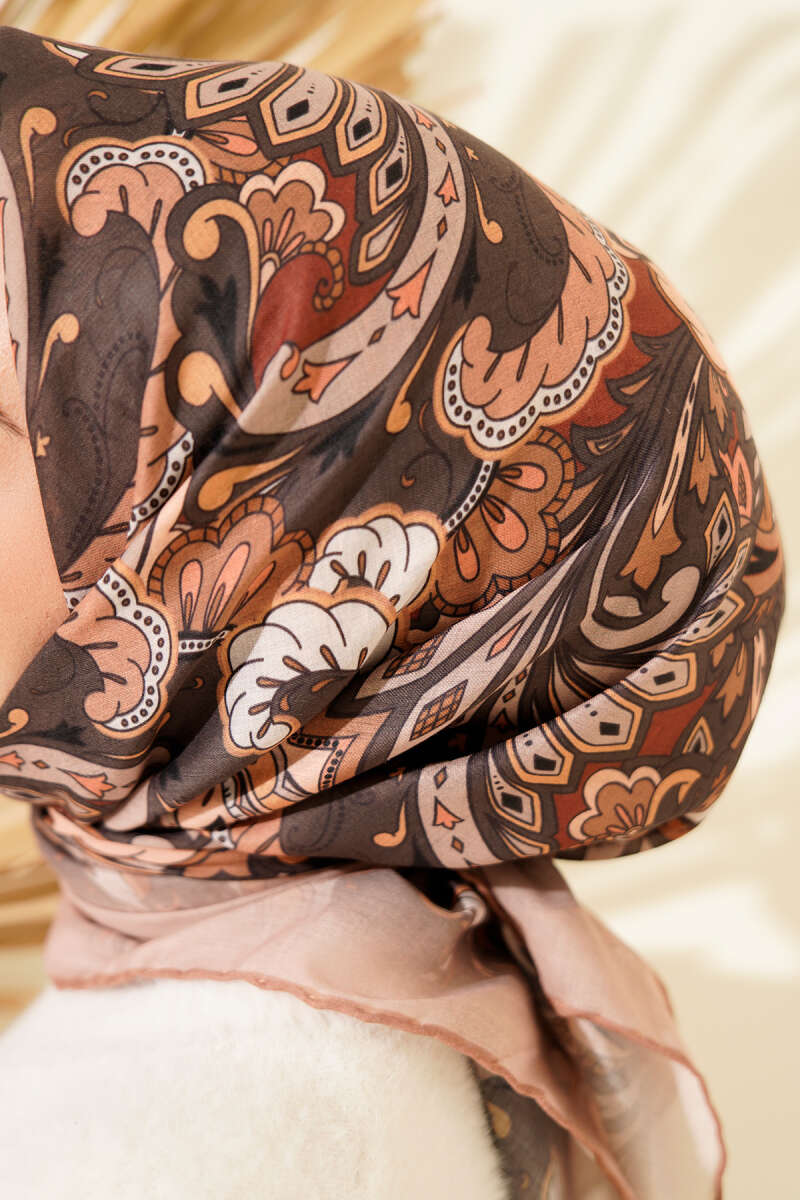 Desenli Acı Kahve Serisi Eşarp Asorti 3