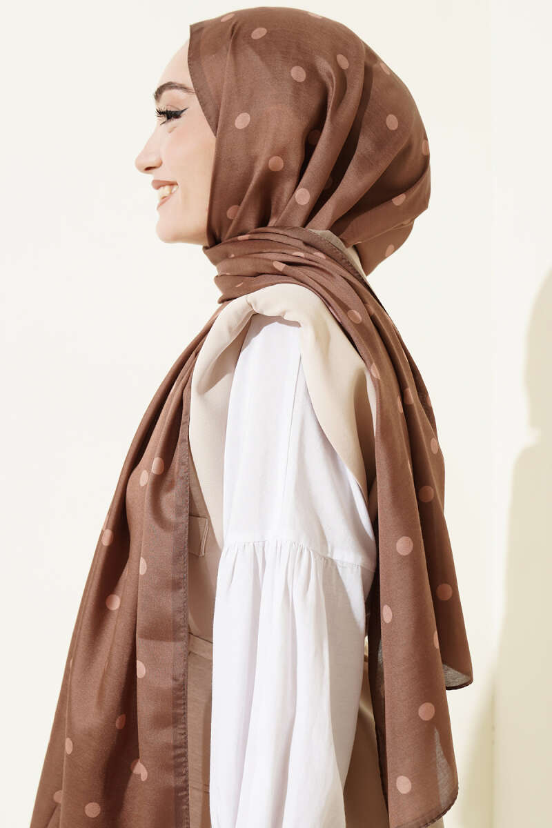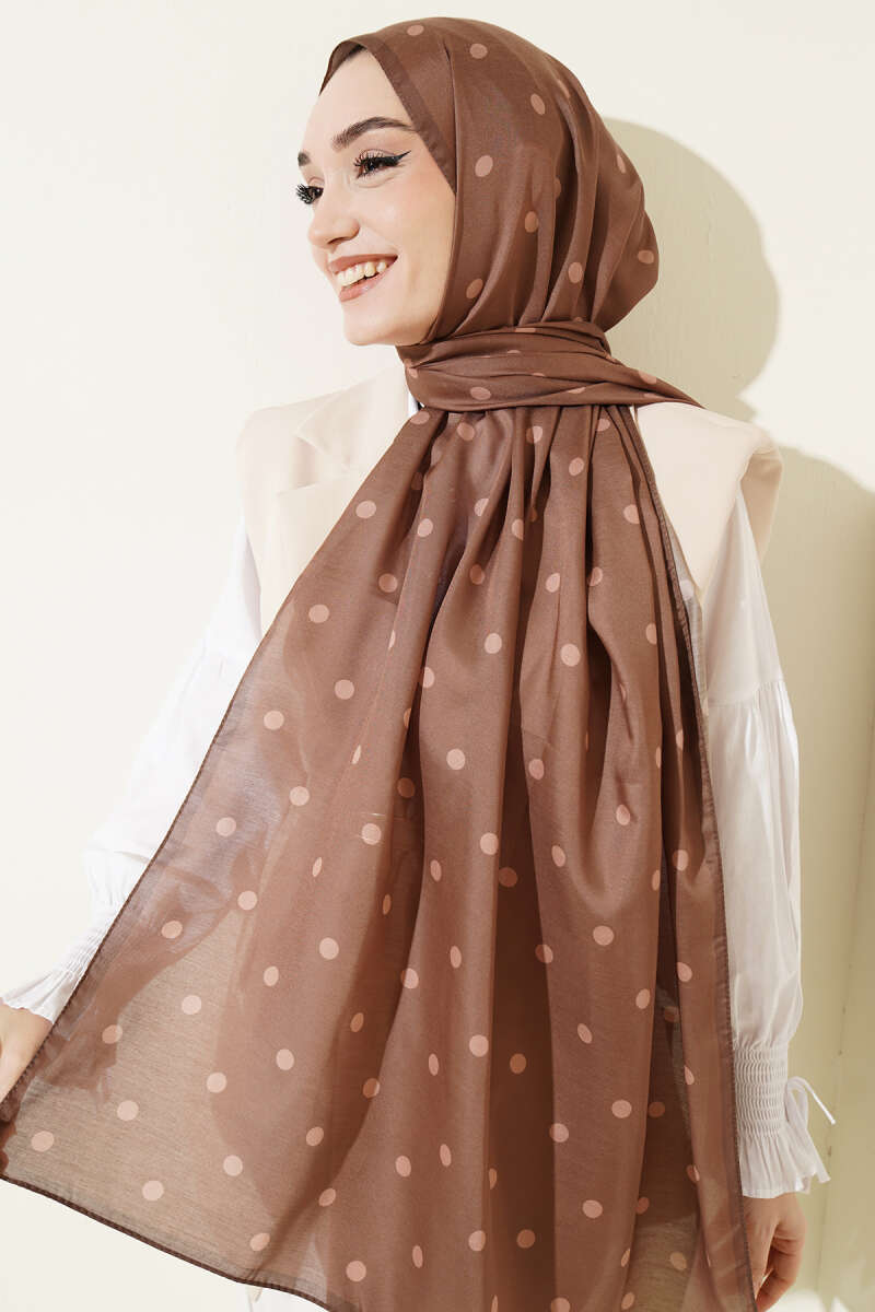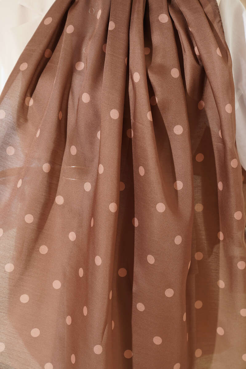 Retro Puantiye Desenli Şal Karamel