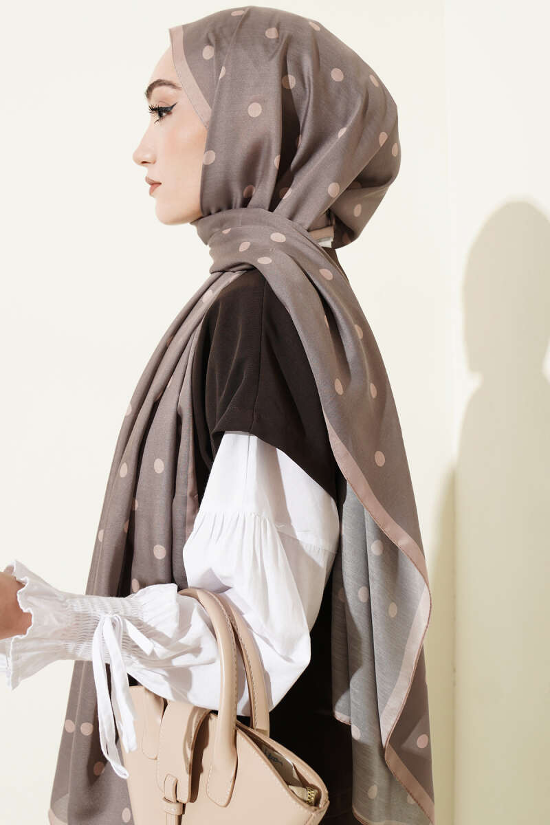 Soft Floral Baskılı Pamuklu Eşarp Acı Kahve