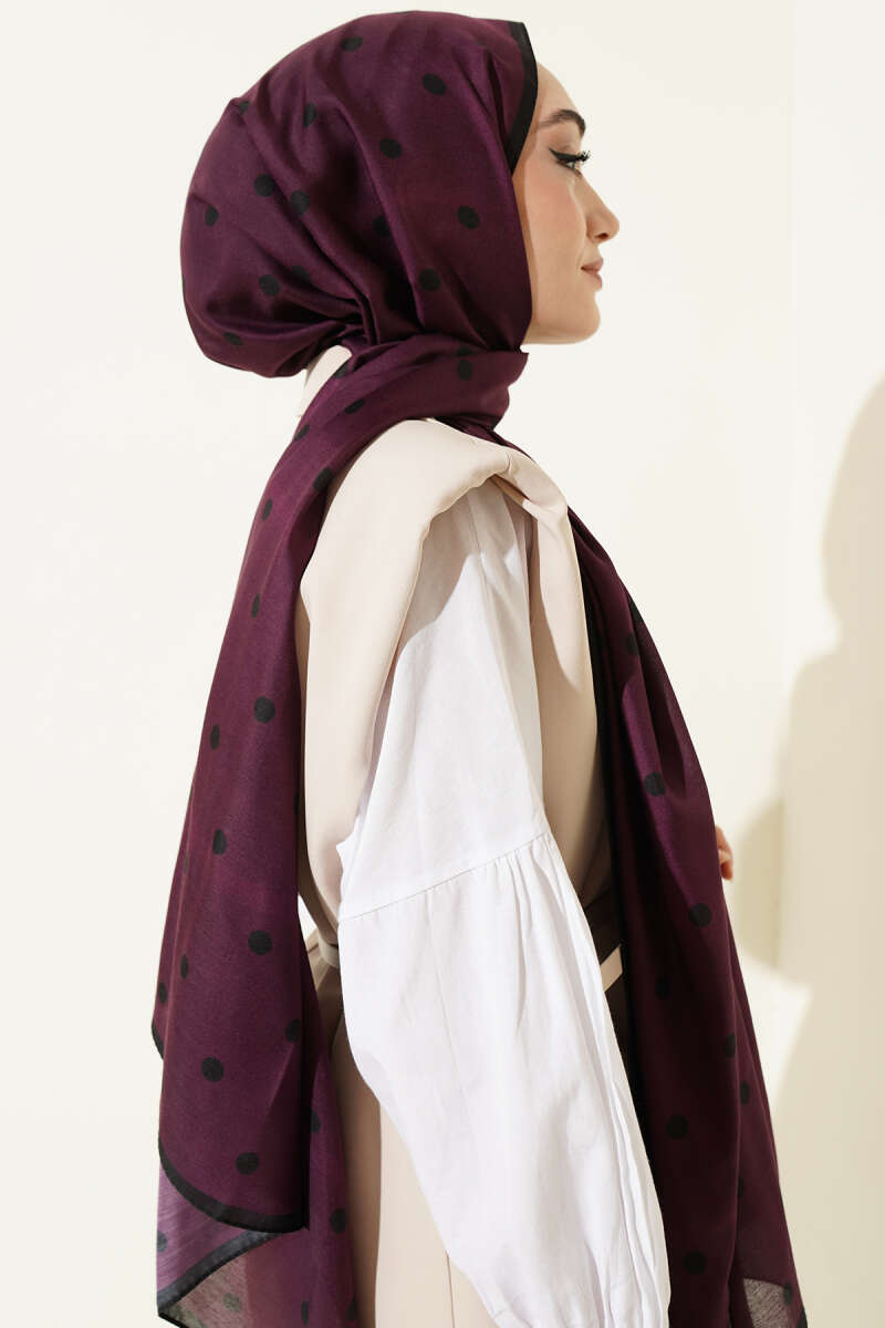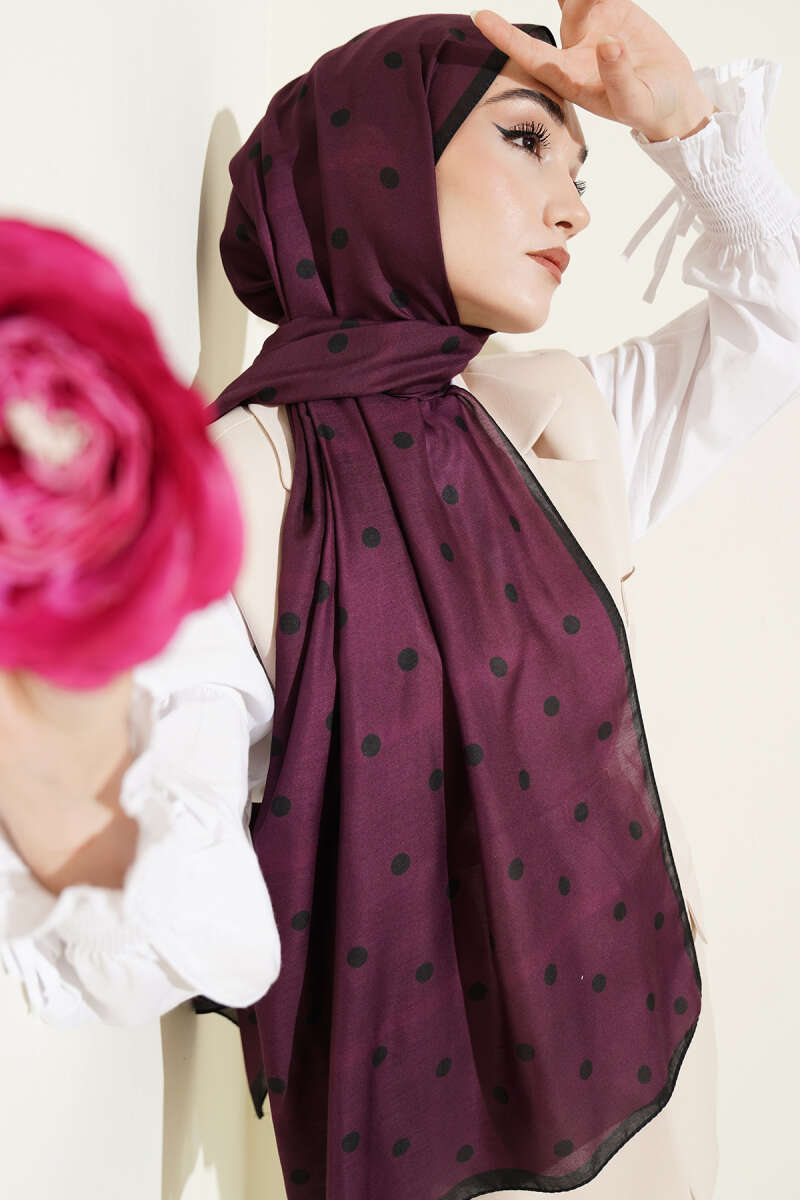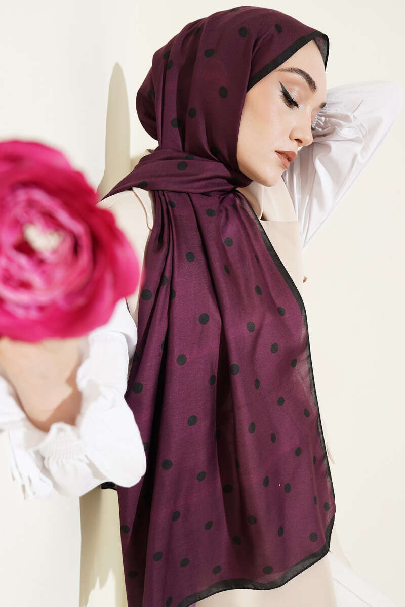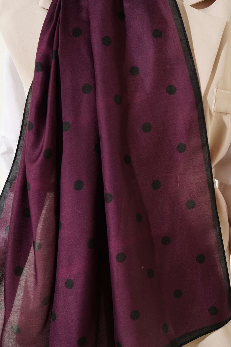 Retro Puantiye Desenli Şal Siyah Mor